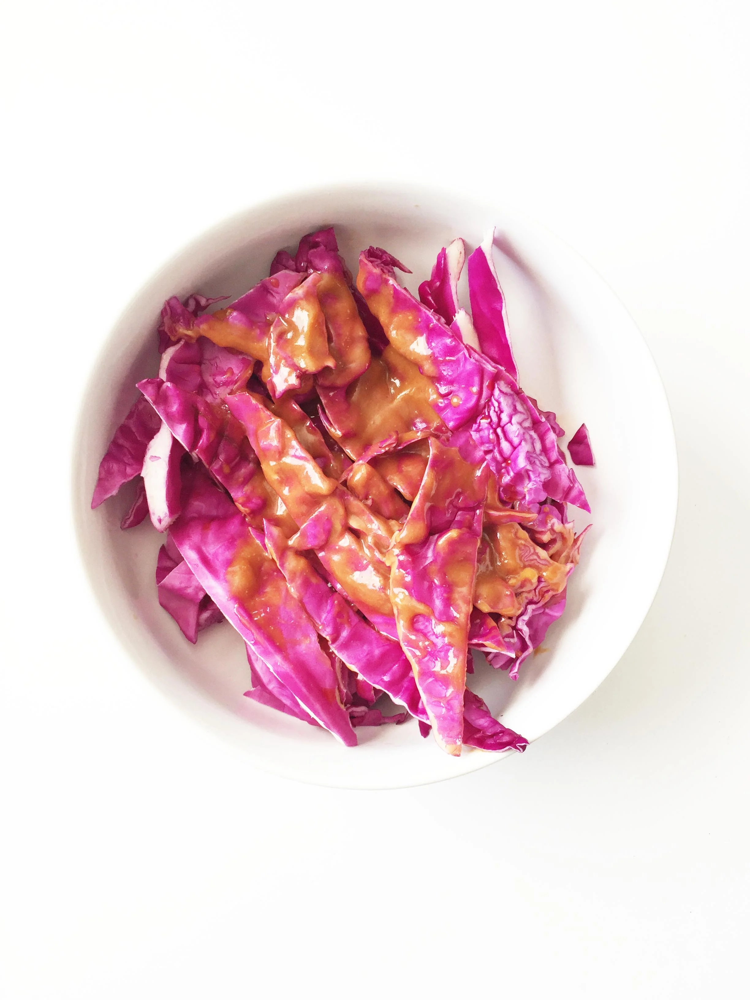 Divide the cabbage between bowls and top with remaining Skinny Thai Peanut Dressing/Sauce.