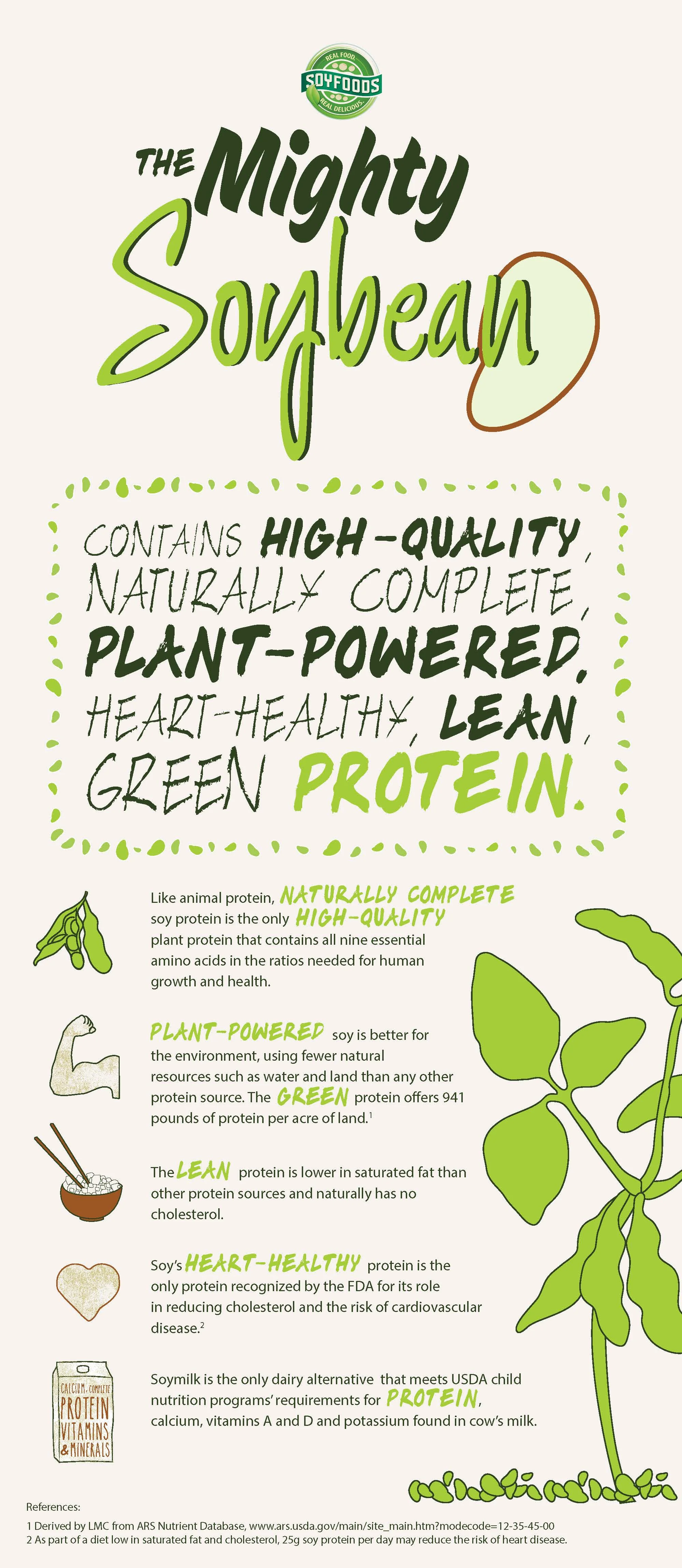 Nancy Chapman MPH, RD, executive director of the Soyfoods Association of North America says, “Soy is the only plant protein that is highly digestible and comparable to beef, milk, fish and egg protein in terms of protein quality.