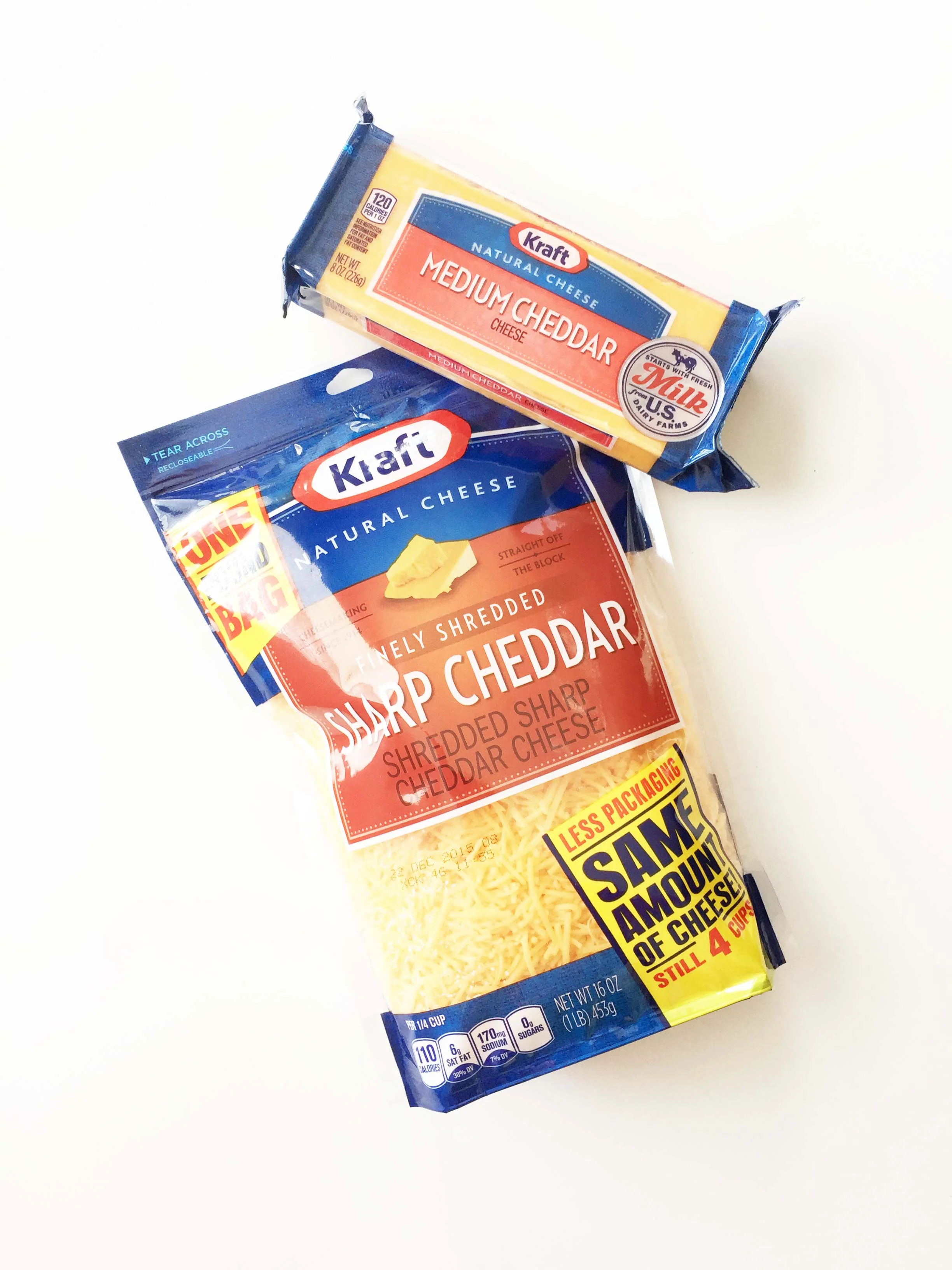 Speaking of cheese, just look at that glorious cheese section at my local Walmart where I was able to find both the shreds and the chunk/block cheese! I was also able to find everything else I needed for this recipe here in this same store.