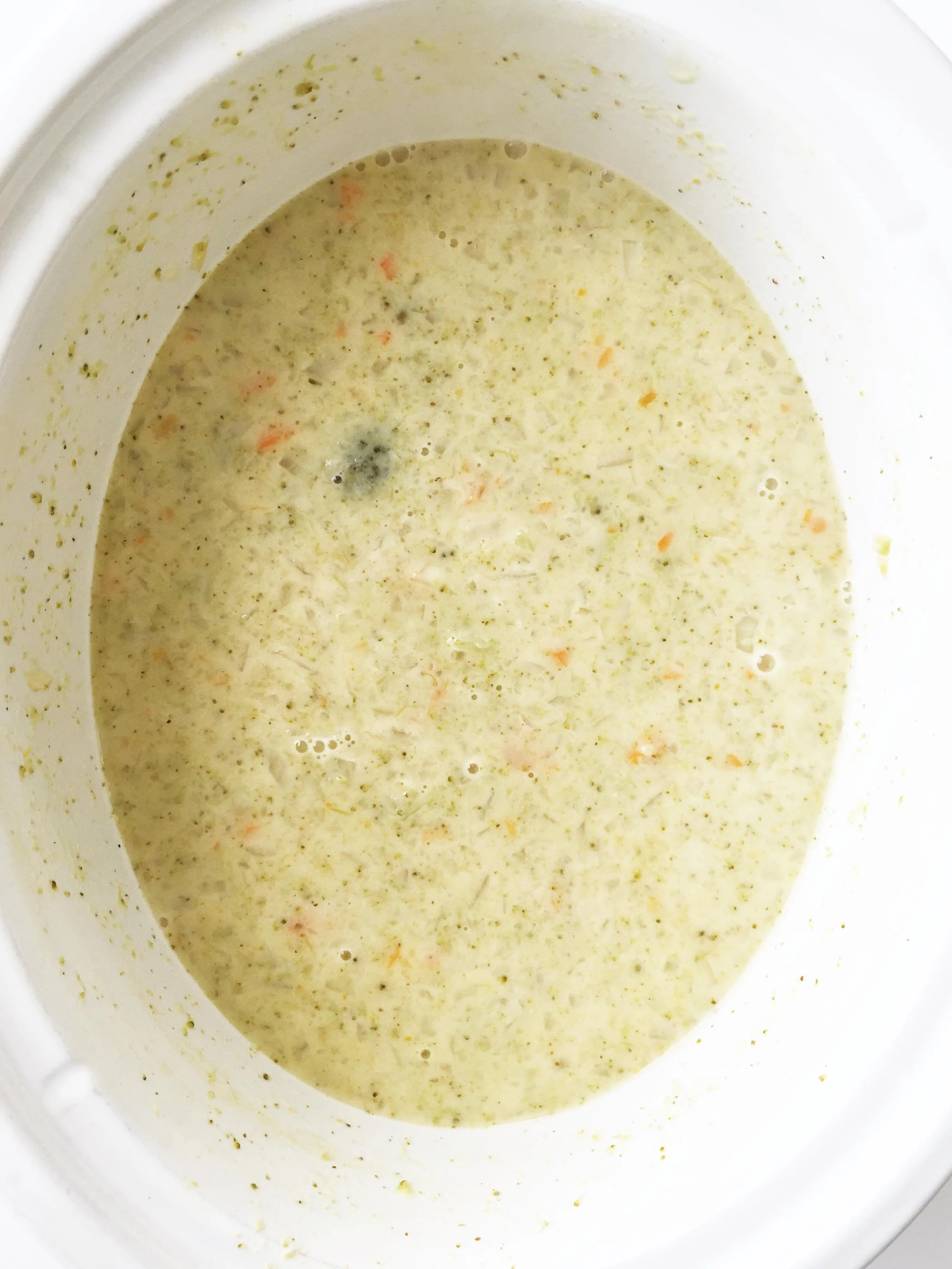 This better-for-you soup starts out with a blend of vegetables, broth, milk, and simple seasonings that come together simply and easily to make one delicious cheesy and balanced meal in a bowl.