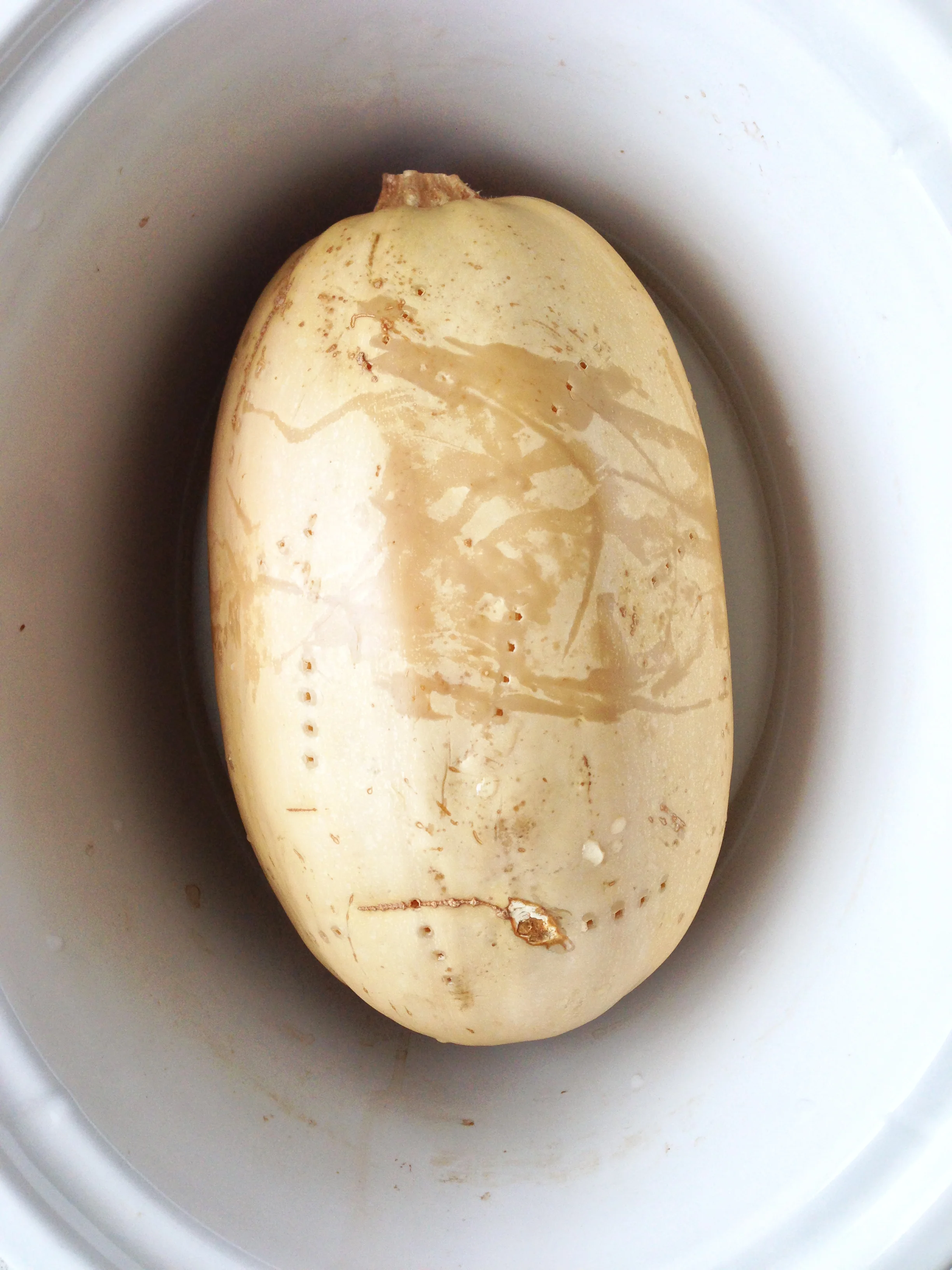 Did you know that you can cook a spaghetti squash in a slow cooker, rather than baking it in the oven? Well, now you do!