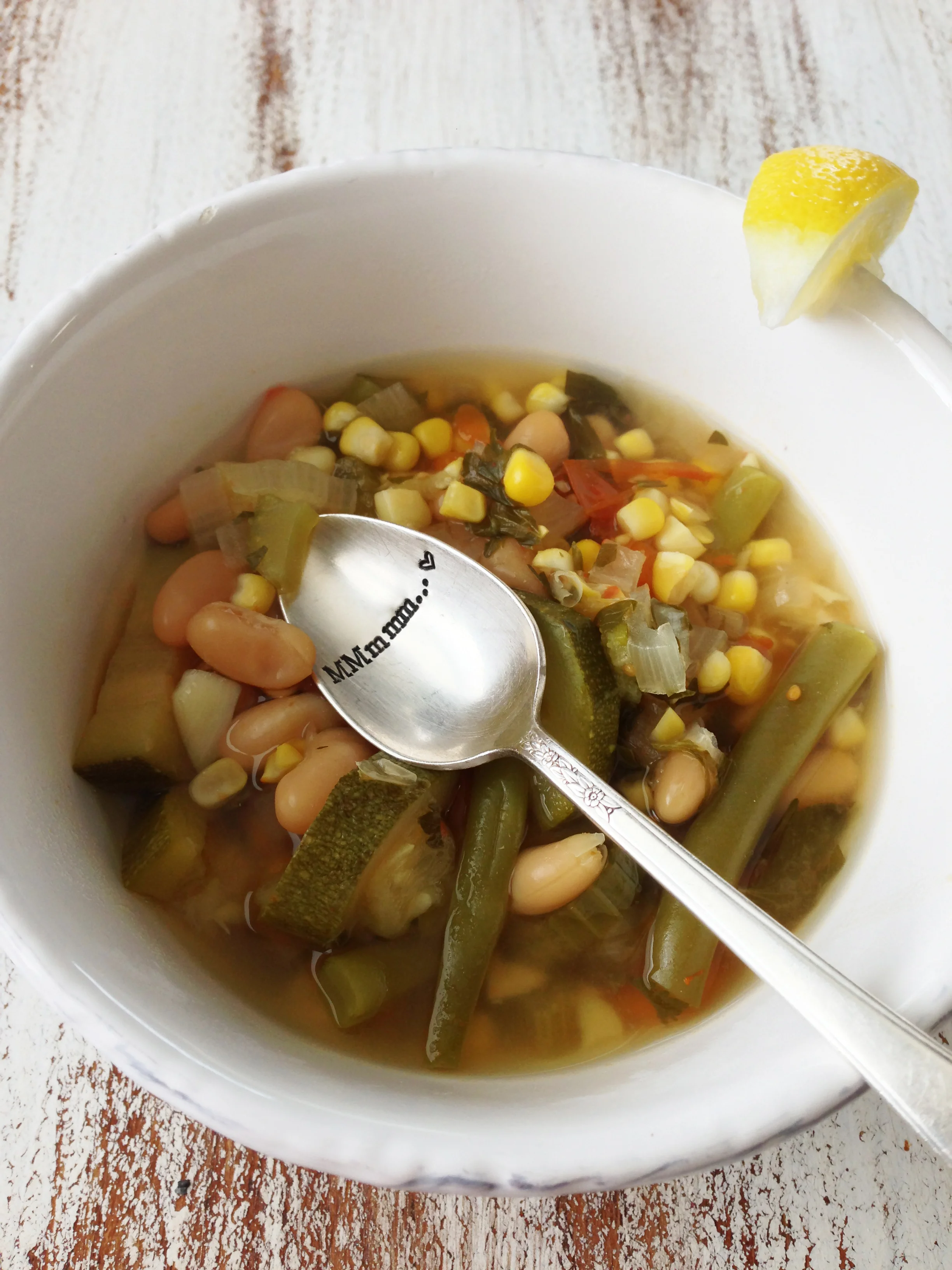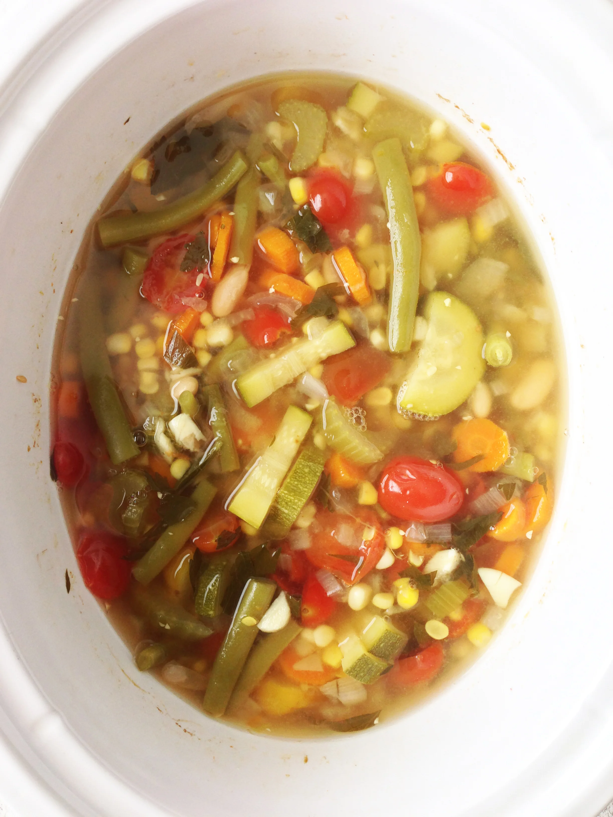 This particular soup is very lightly based off one of my mom's favorites . I basically swapped out all of the vegetables for summer equivalents, left out the potatoes... and tossed it in the slow cooker rather than standing at my stove to babysit.