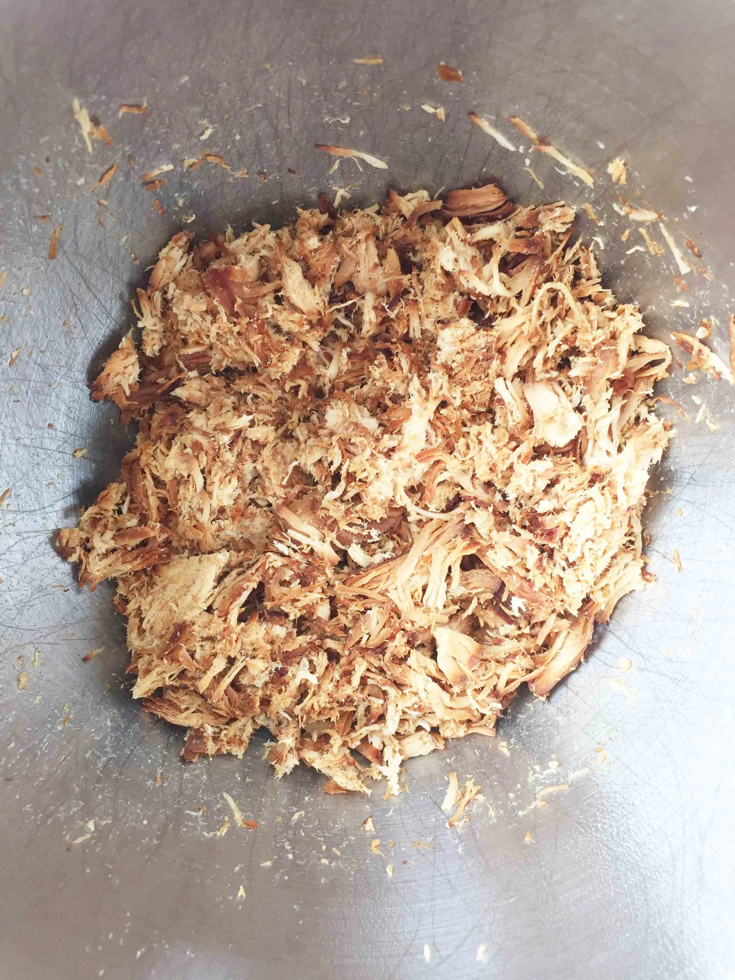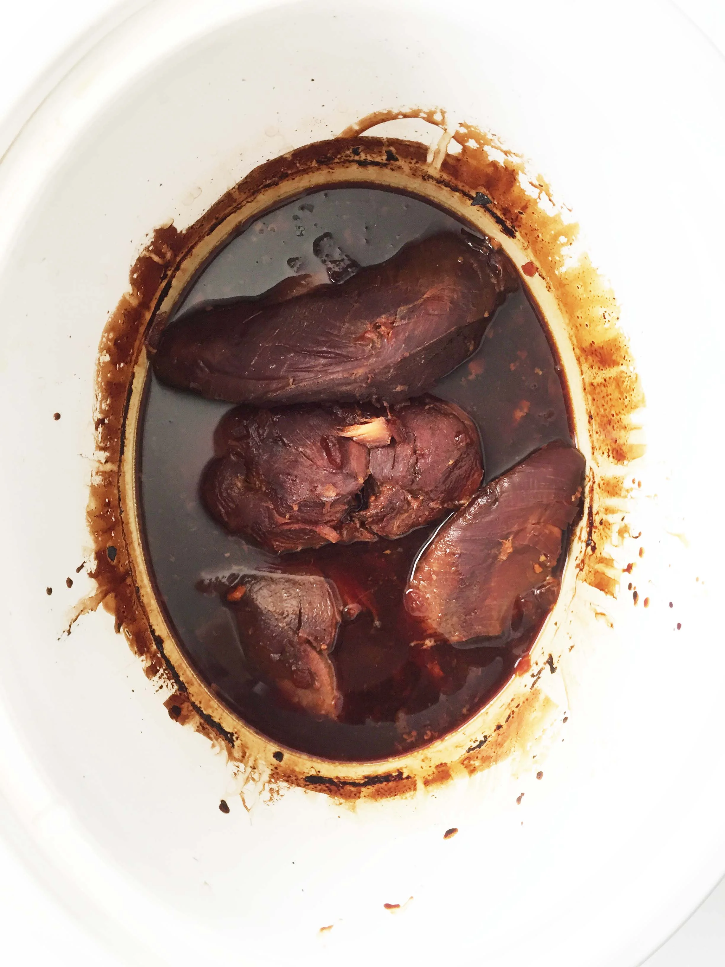 Once done, remove the chicken from the crock pot to shred with two forks or in the bowl of a stand mixer with the paddle attachment.