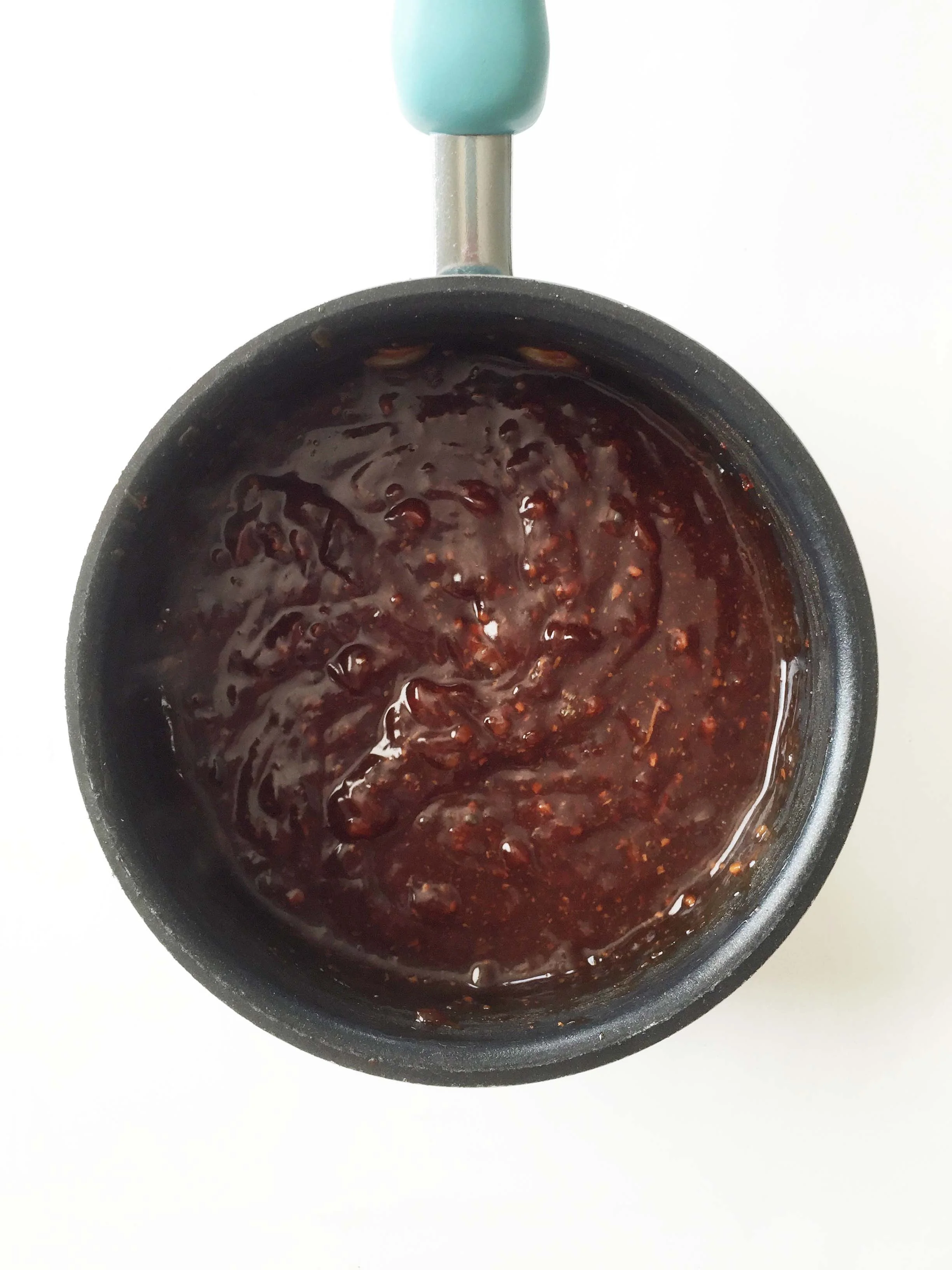 Transfer the sauce in the bottom of the crock pot into a medium sauce pan.