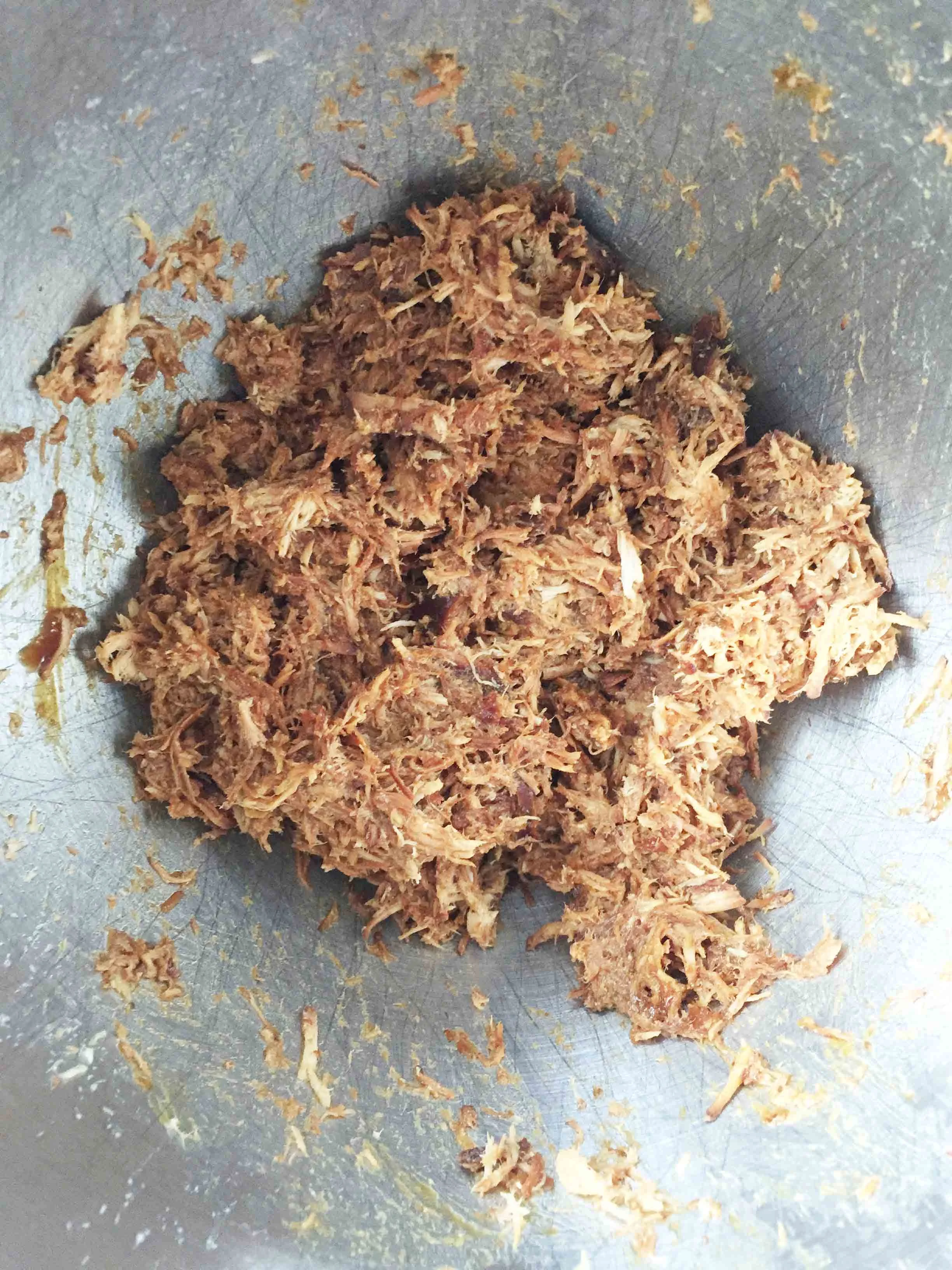 Reserve 1/2 C. of the teriyaki sauce and mix the rest with the shredded chicken.