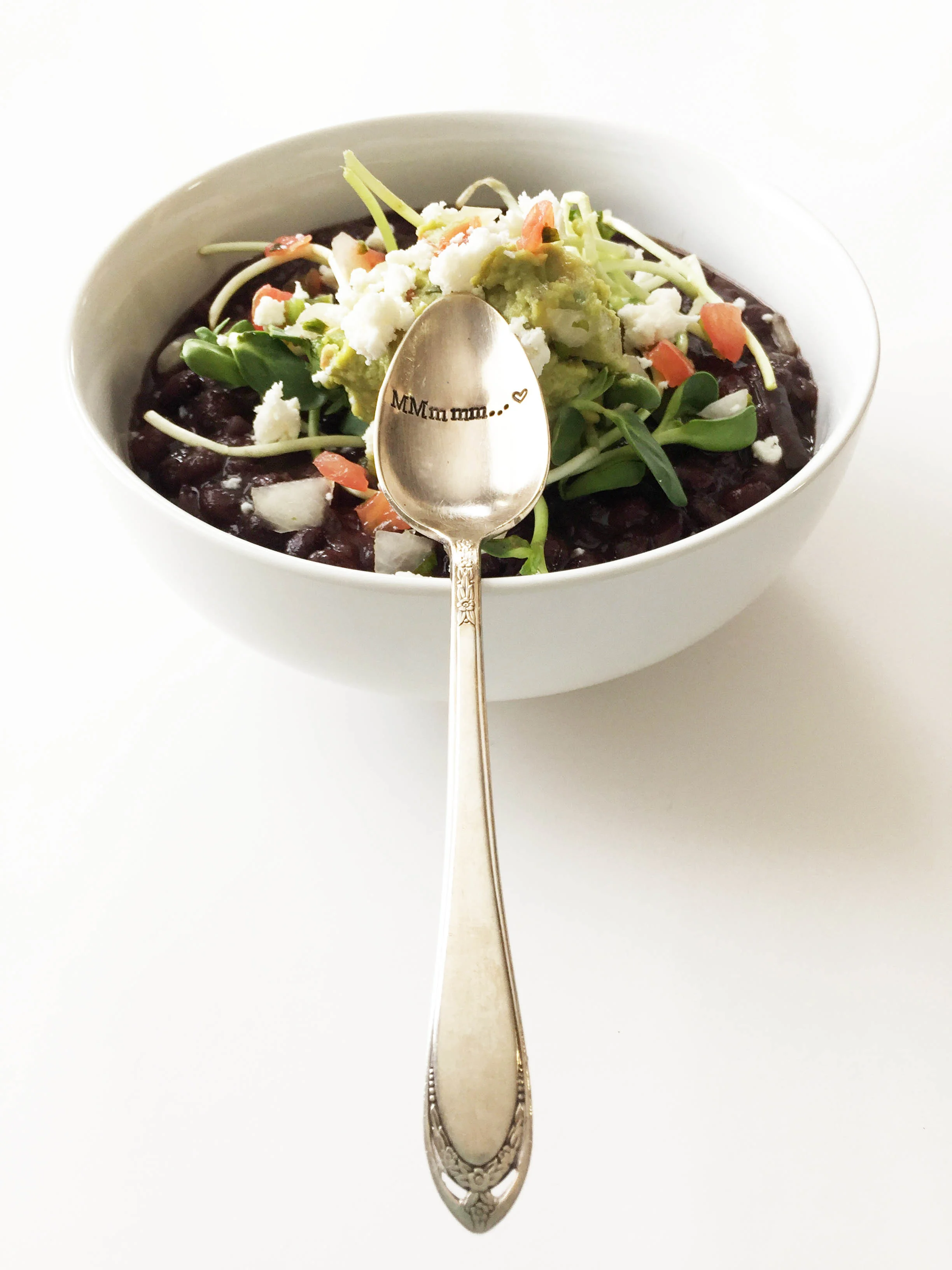 I used these beans atop a Mexican style salad, alone in a 'bean bowl' (as pictured), atop some baked sweet potato chips for a twist on healthified nachos, and also inside some vegetarian enchiladas with spinach and sweet butternut squash. Yum!