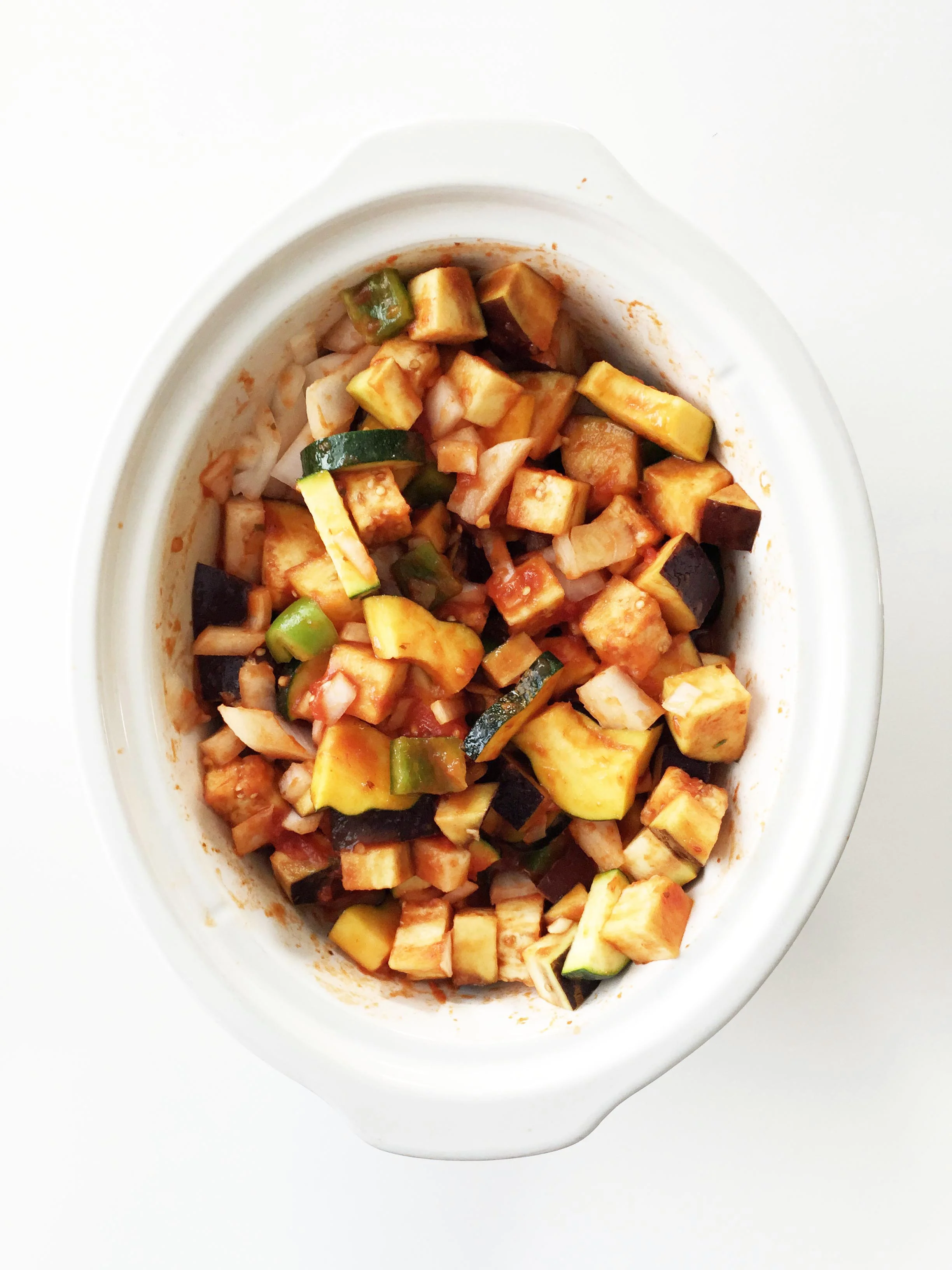 Toss everything for the ratatouille into the crock pot.