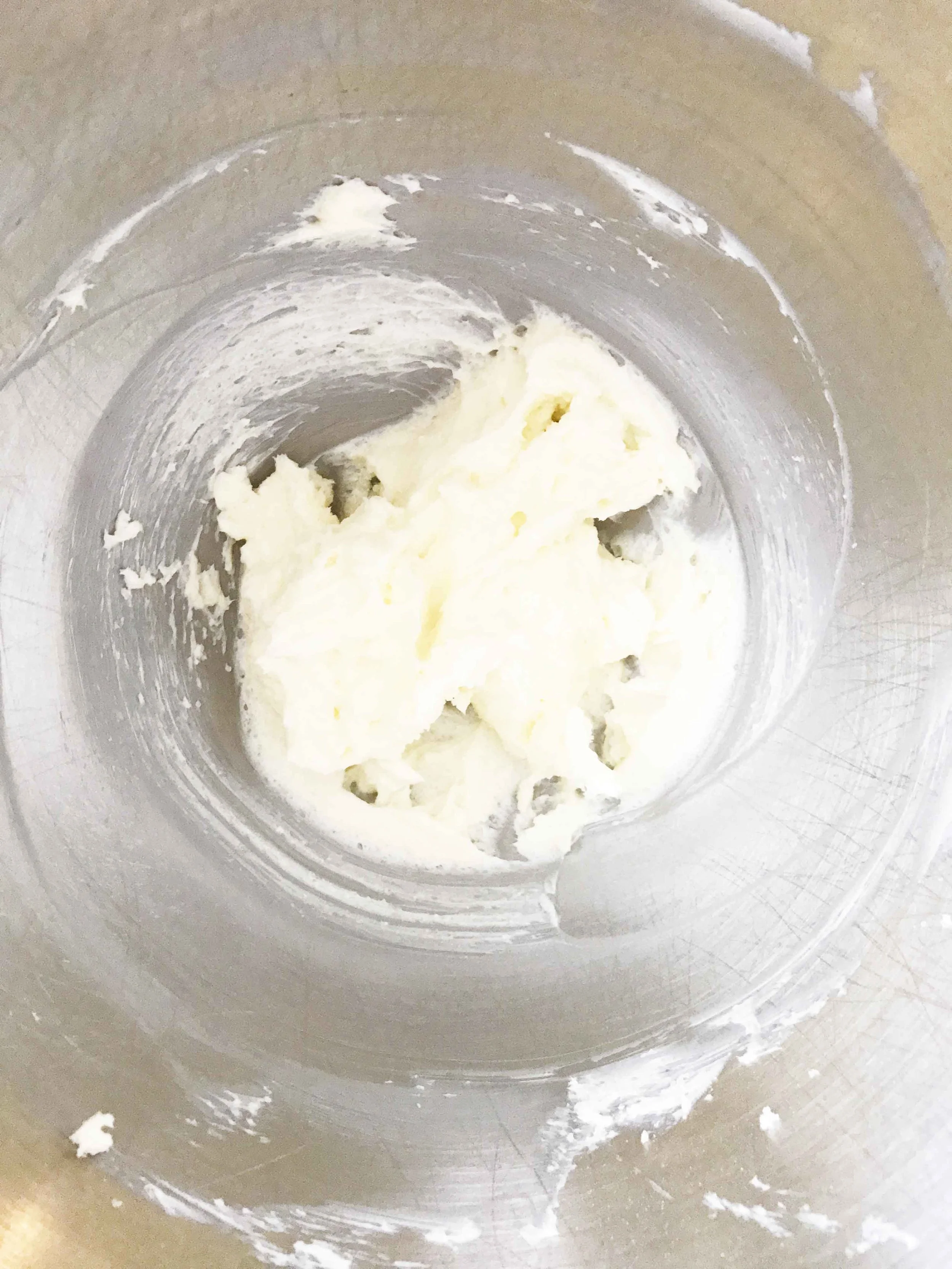 In a large bowl beat together the 1/2 C. butter, 2 Tbsp. sugar, 2 Tbsp. sweetener, 1/2 Tsp. almond extract, and 1/2 Tsp. Cinnamon until smooth and creamy ad a medium speed.