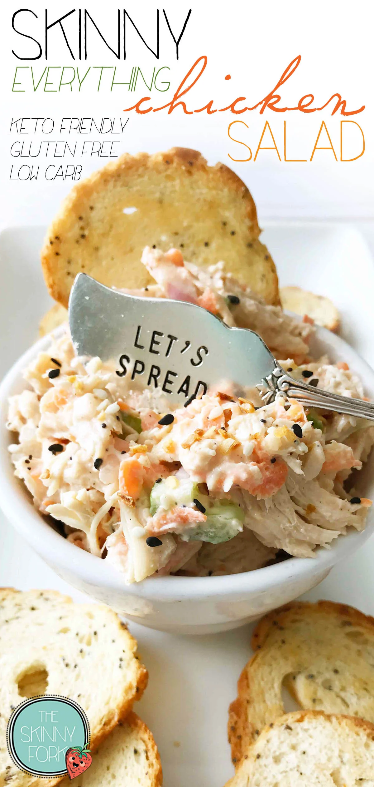 TheSkinnyFork.com Chicken salad that's made quickly and easily with a touch of cream cheese and plenty of everything seasoning! All that you love about 'everything seasoning' incorporated in a simple and delicious chicken salad. Prep Time: 10 Minutes • Cook Time: 0 Hours