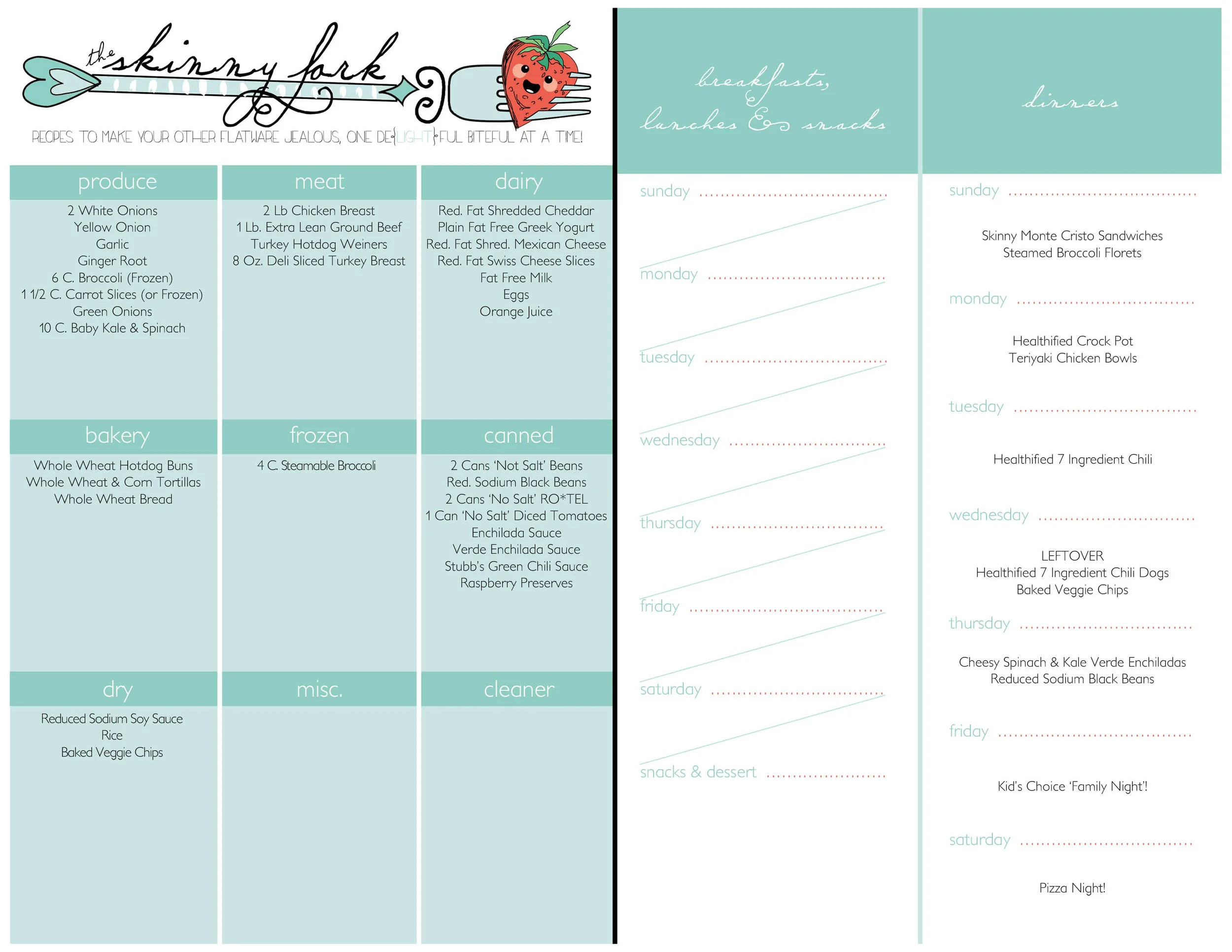 For the next few weeks (maybe even through the summer) I'll be putting out these Skinny Fork Dinner Plans as a test run to see how they do and if they are enjoyed. Please feel free to let me know your thoughts and how you've enjoyed them.