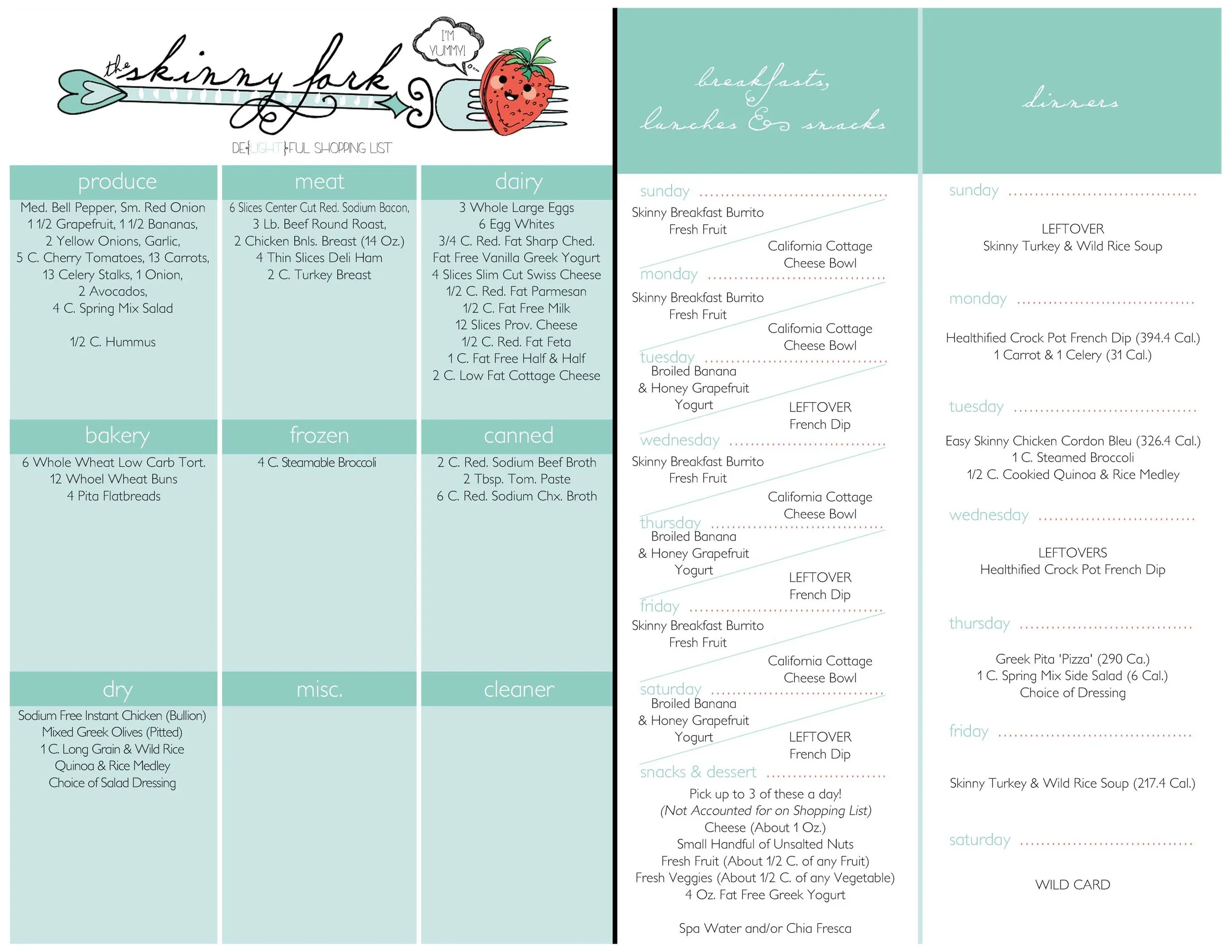 Alright everyone - here it is... Week six of the 'Get Forking Skinny Meal Plan'!