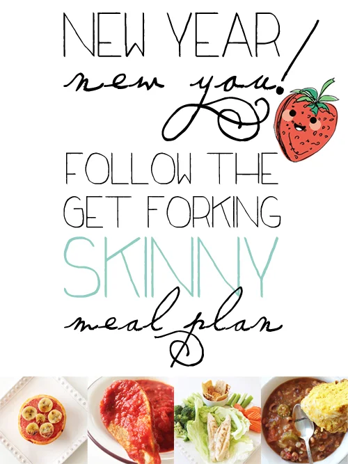 The 'Get Forking Skinny Meal Plan' will last for six weeks and will include three meals a day (each at 300-500 calories) and three snack options (each at 100 calories.) I will be providing weekly recipes, a shopping list, and of course the weeks 'meal plan'.