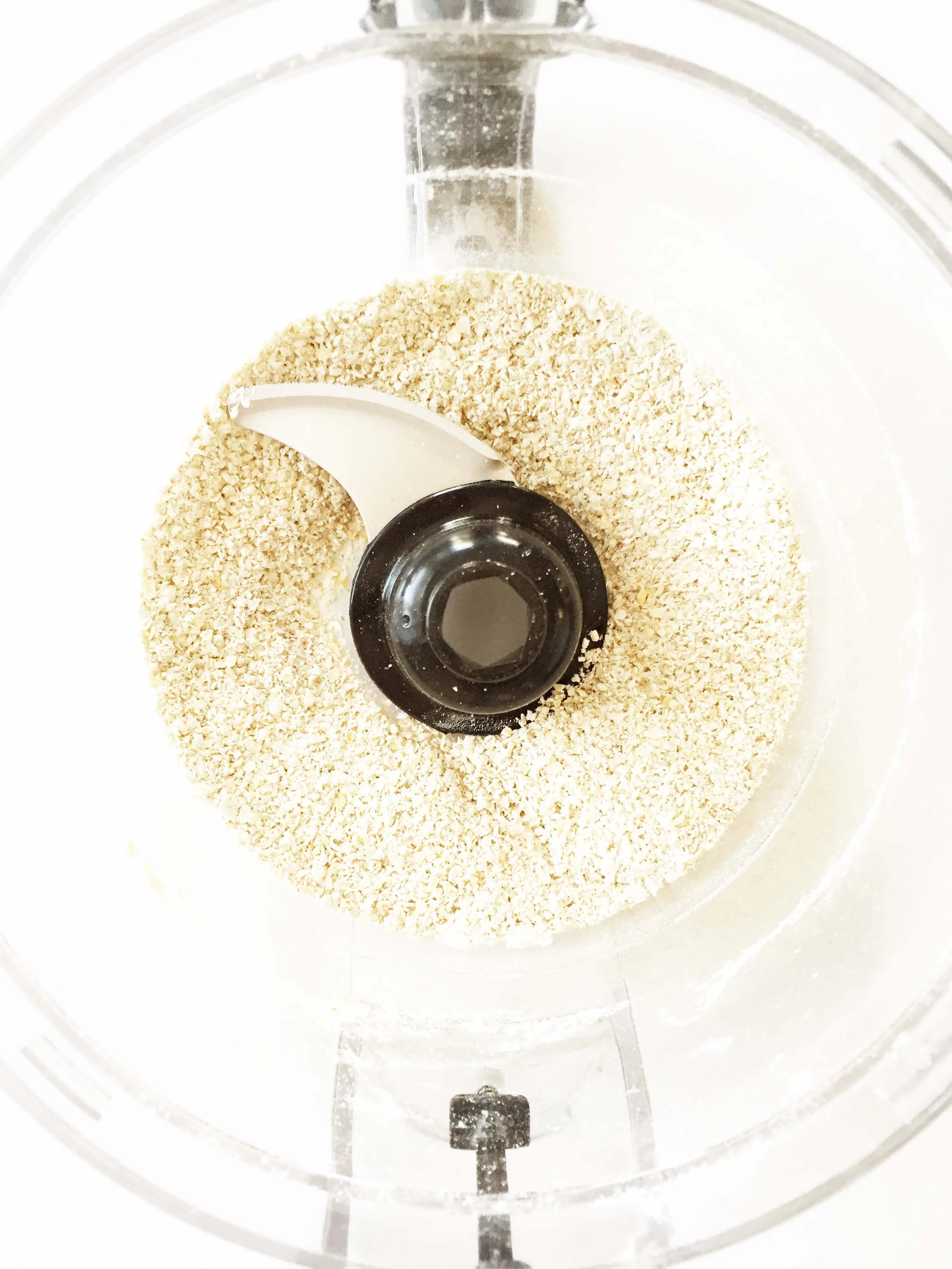 Place the 1 C. Instant Oats, 2 Scoops Vanilla Protein Powder, 2 Tsp. Baking Powder, and 2 Tsp. Natural Sweetener into a blender or food processor; blend until an 'oat flour' is created.