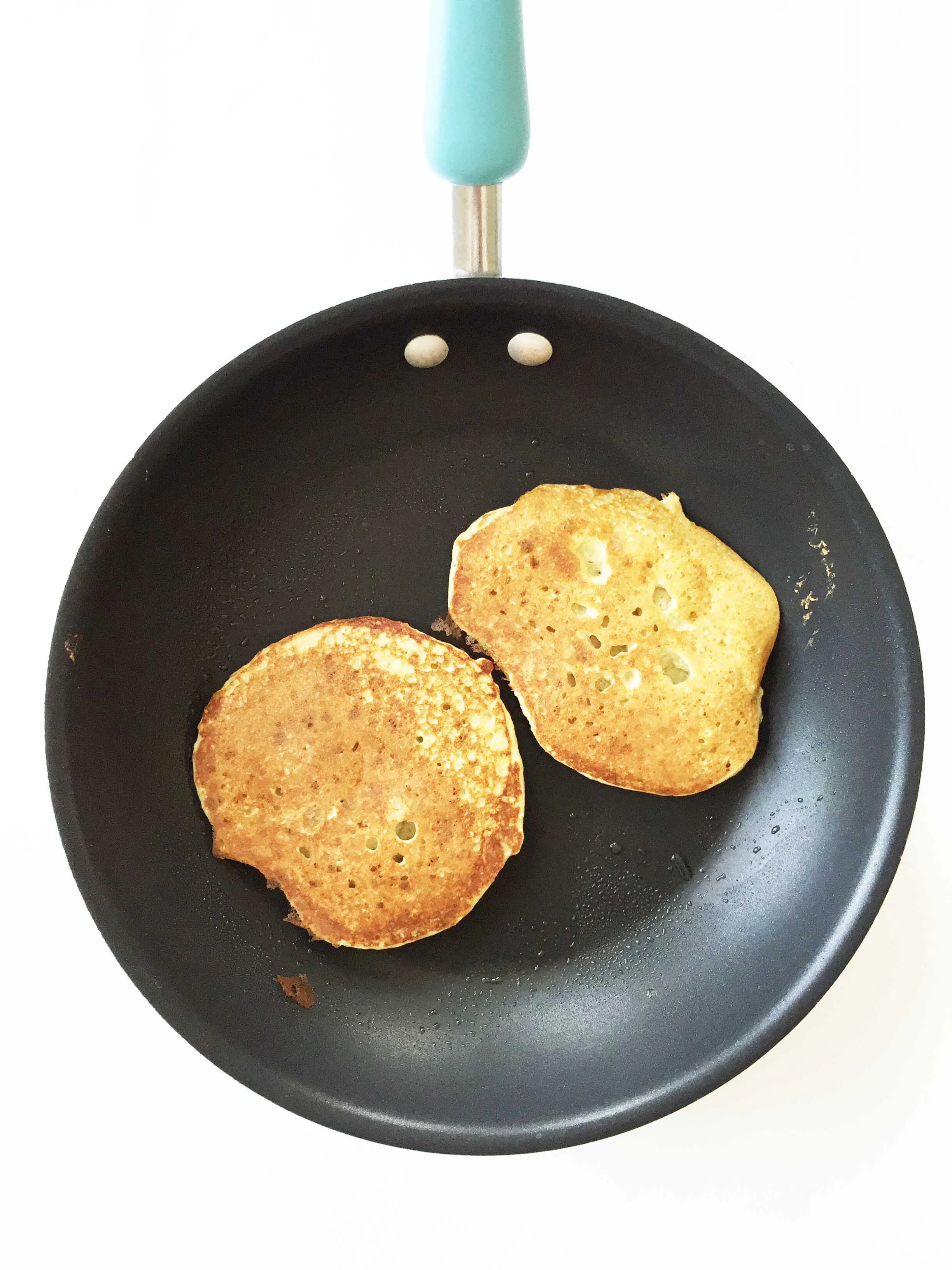 Once the batter has bubbled once or twice, flip the pancake over and continue to cook for 2-3 minutes.