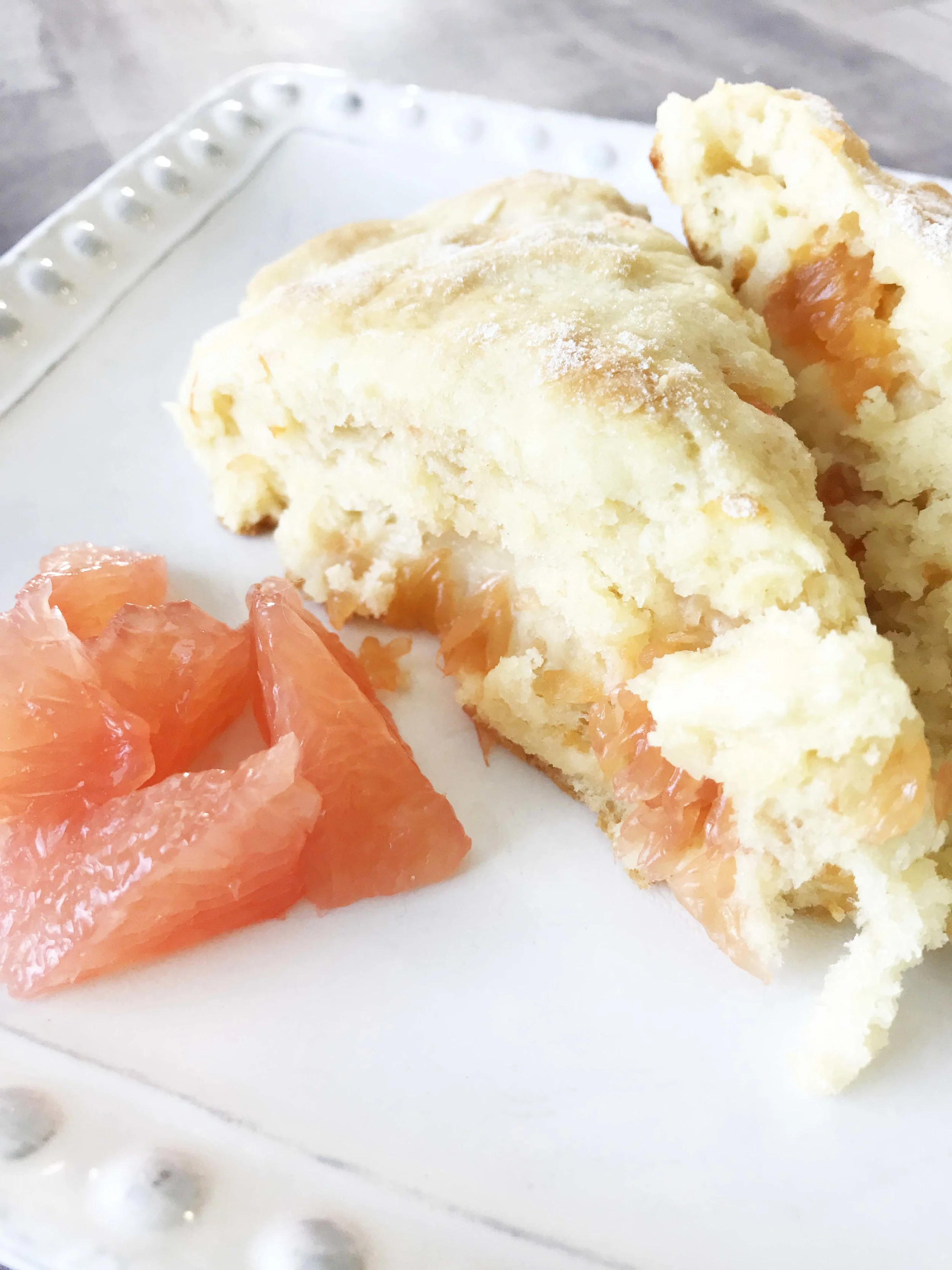 Way way back when, I made some delicious Summer Strawberry Scones. And while I had half a mind to go back and update that original, I decided to take a slightly different route this time around. Instead I made these Skinny Grapefruit Scones.