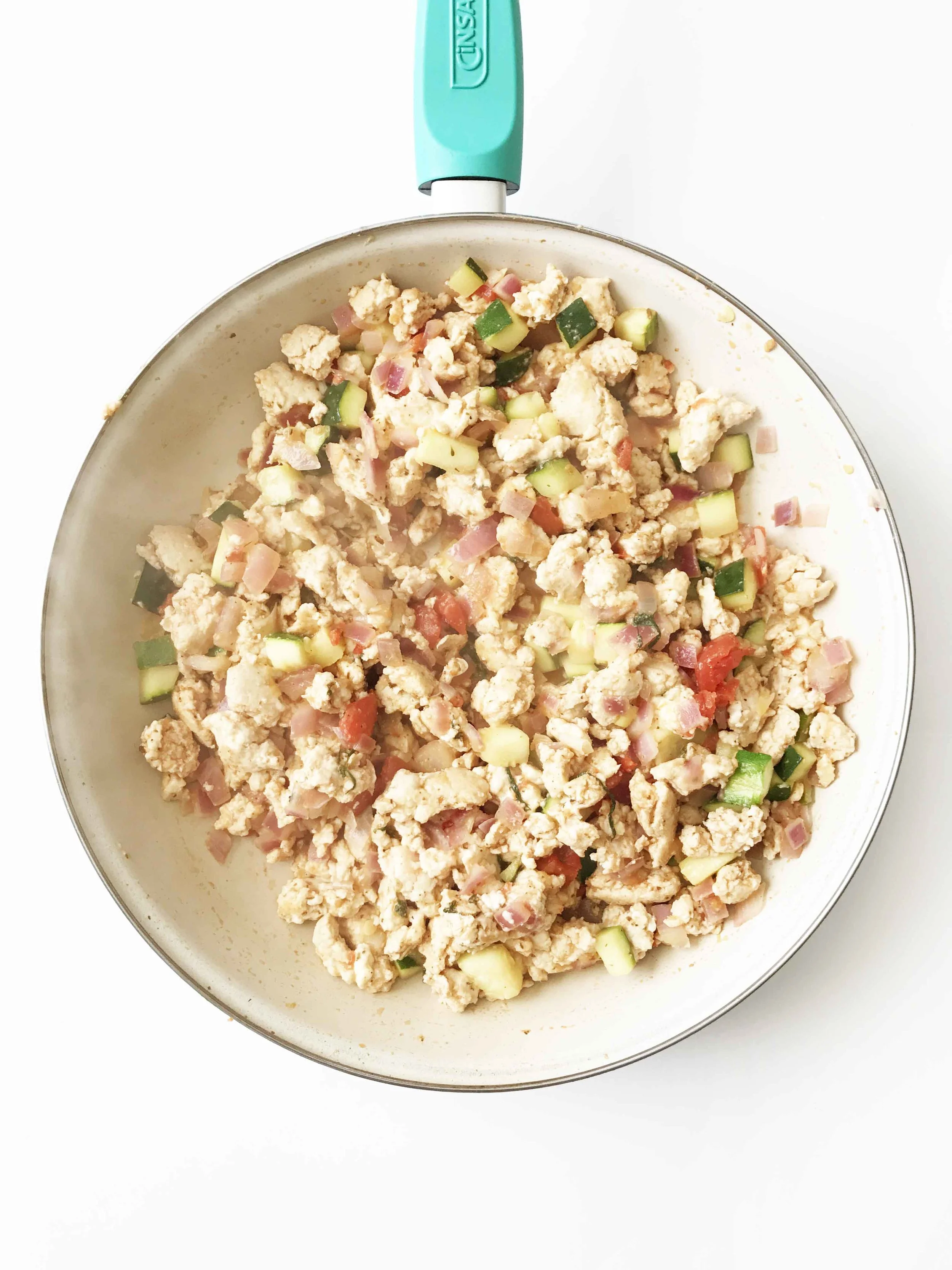 I honestly would have never thought in a million years to melt the feta into the turkey meat here. But, I gotta say... it gives the turkey that much needed moisture and loads of flavor with that sharp saltiness that comes naturally to feta. The zucchini and red onion were the perfect additions to 'beef up' the filling while the tomatoes gave that nod to a traditional tex-mex style taco.