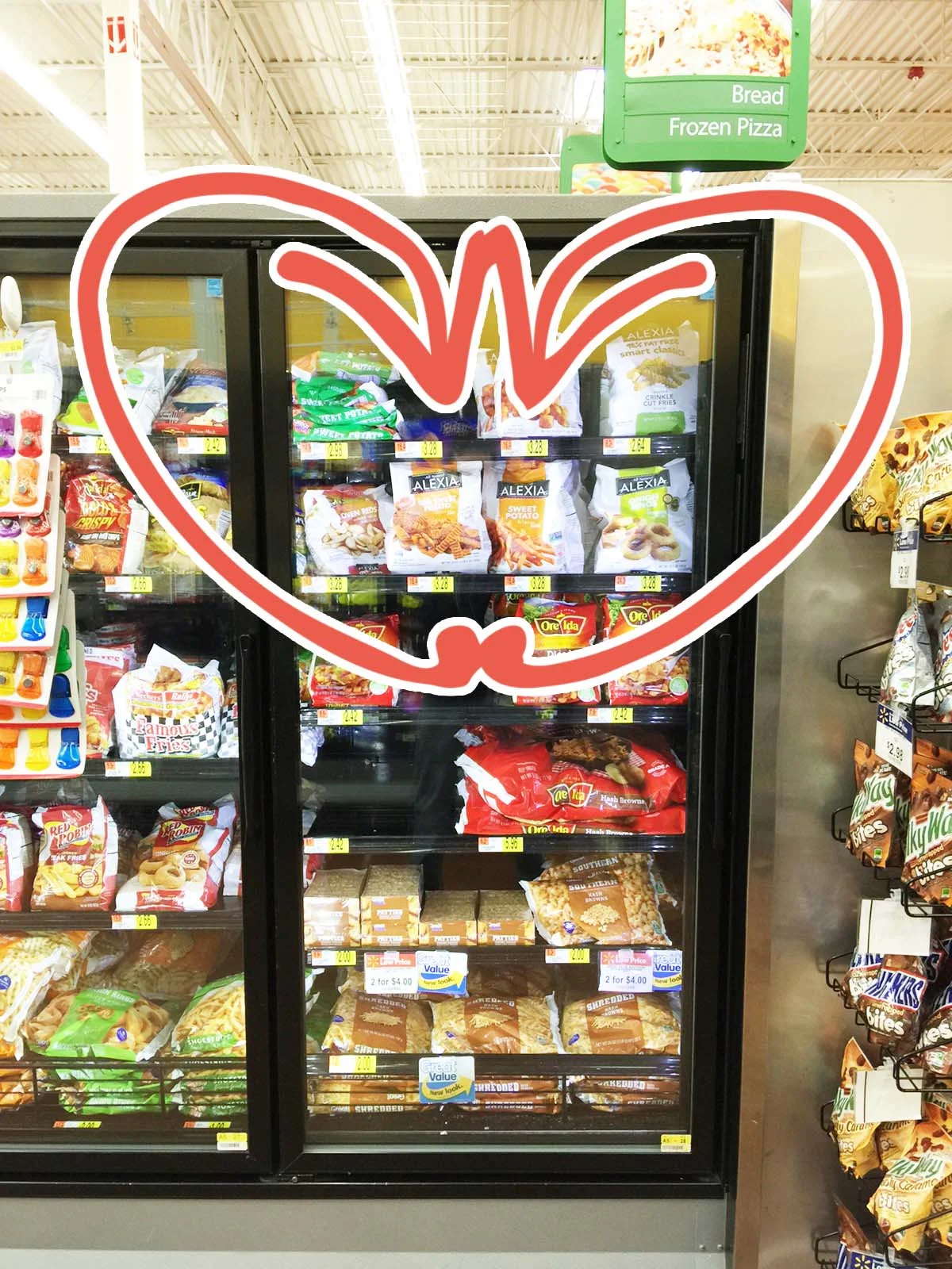 I found my lovely Alexia Sweet Potato Fries in the 'Vegetable' and 'Frozen Meals' aisle towards the very end of the row. Though their placement may vary by store.