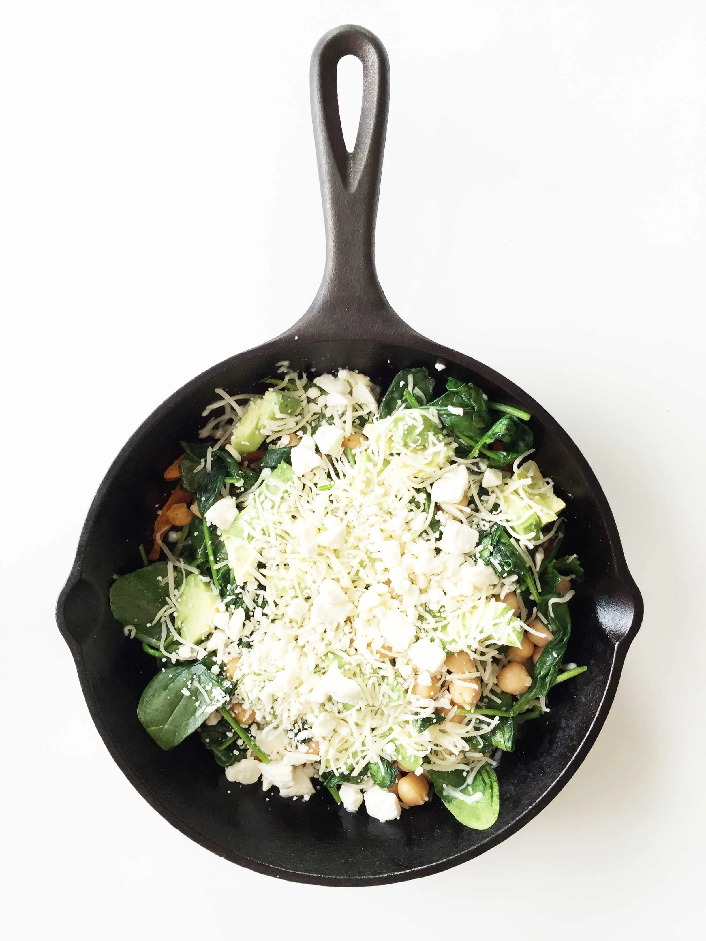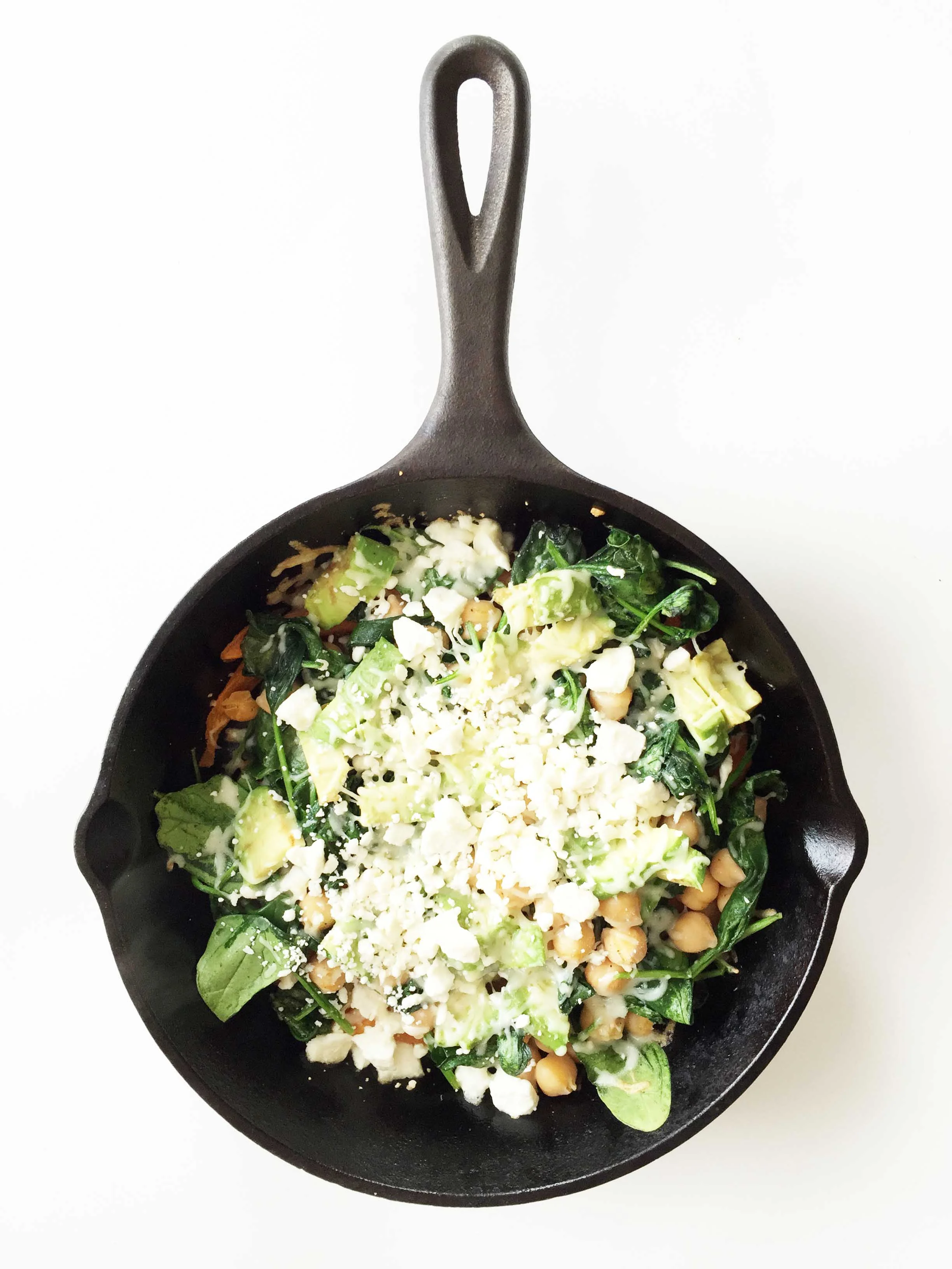 I wanted to take a more classy mediterranean detour today, so I swapped the black beans I had used in my original stuffed sweet potato for chickpeas and added a bit of feta into the mix to give that sharp bite of added flavor.