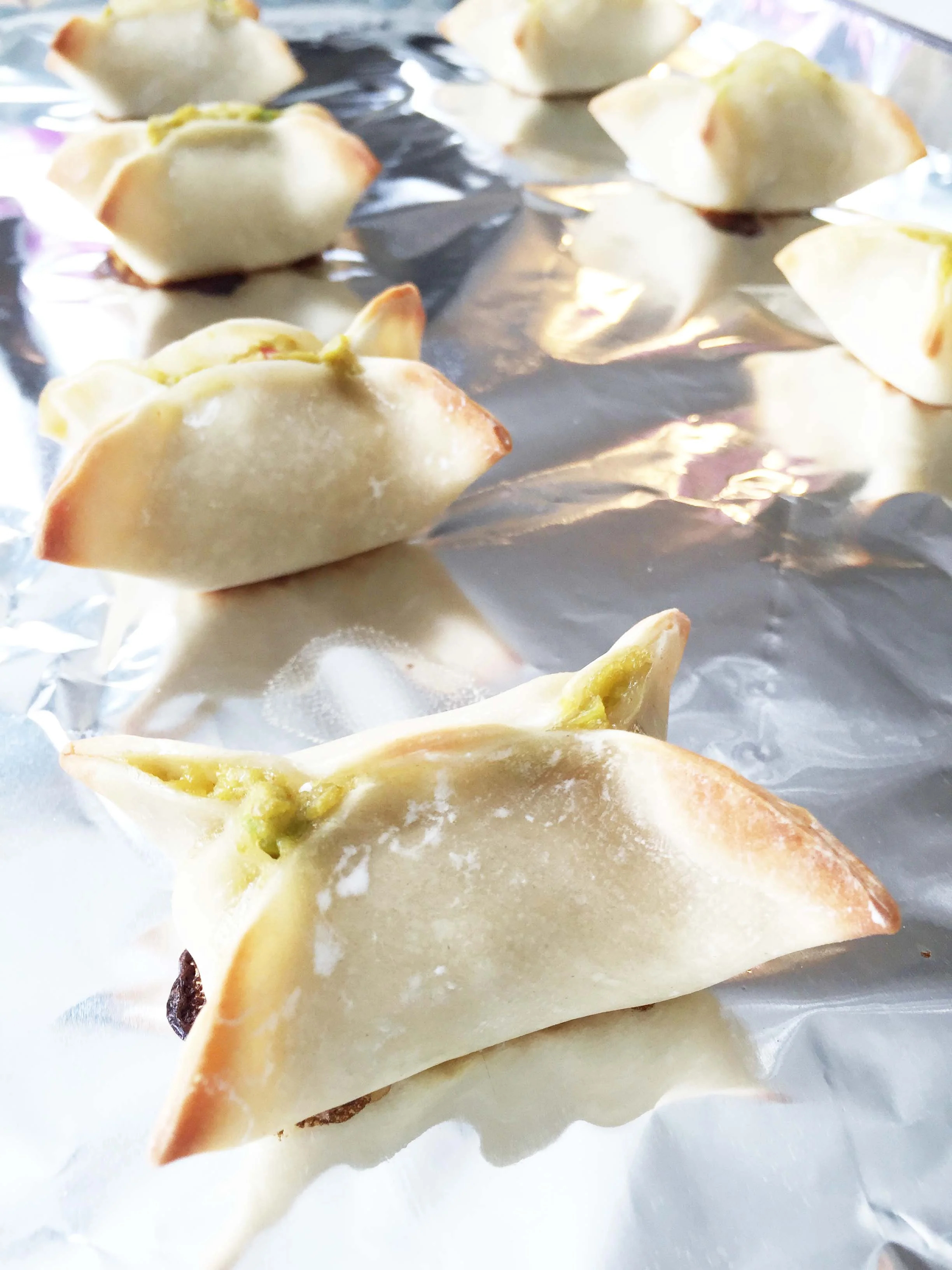 As you can see, my bites opened up a bit during the baking process, even with how well I had them pinched together. So a different sort of fold might be best. Hind-sight is 20/20, you know.