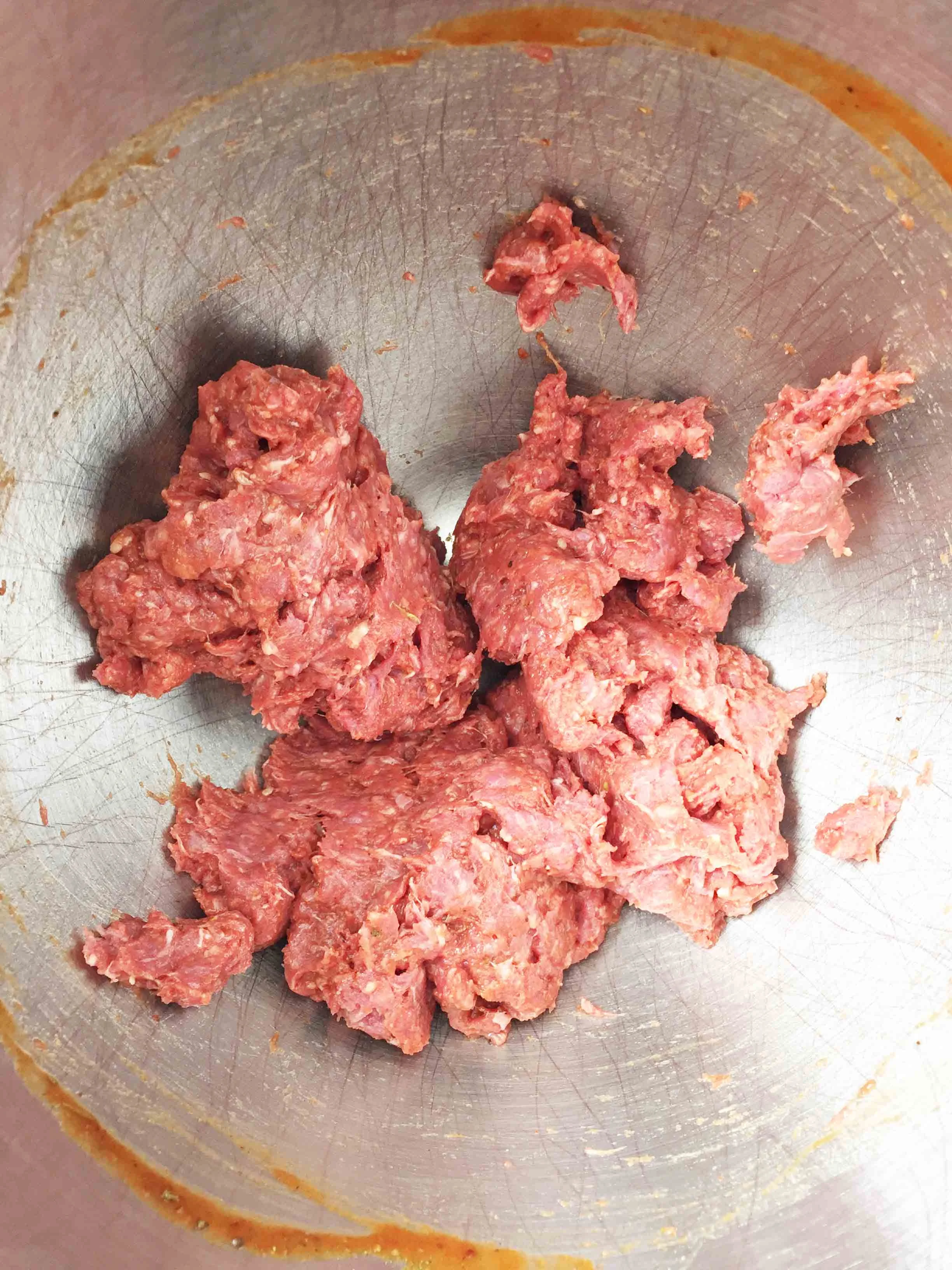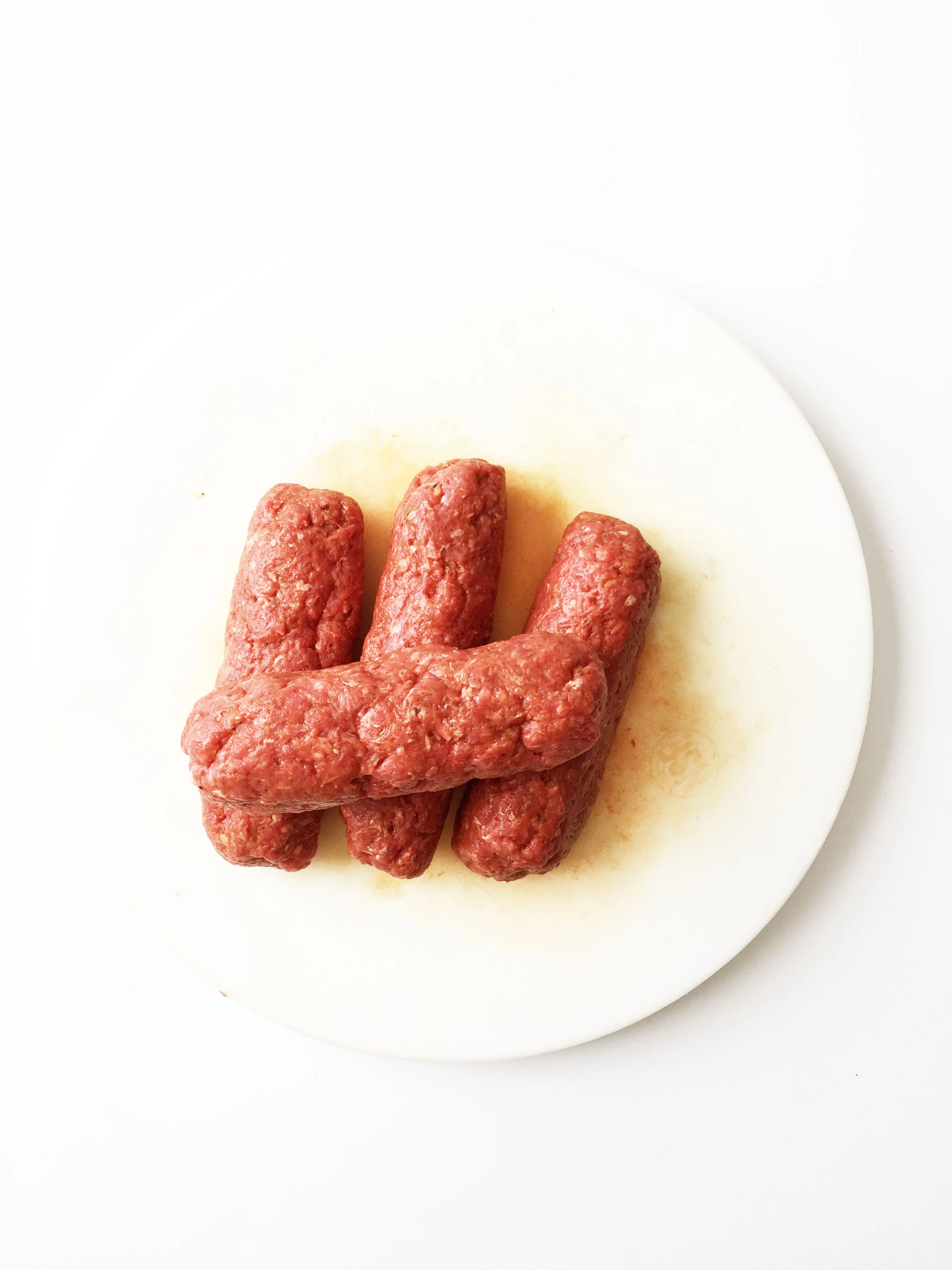 Divide the meat mixture into 4 equal pieces and lay each out into a dry flat surface.