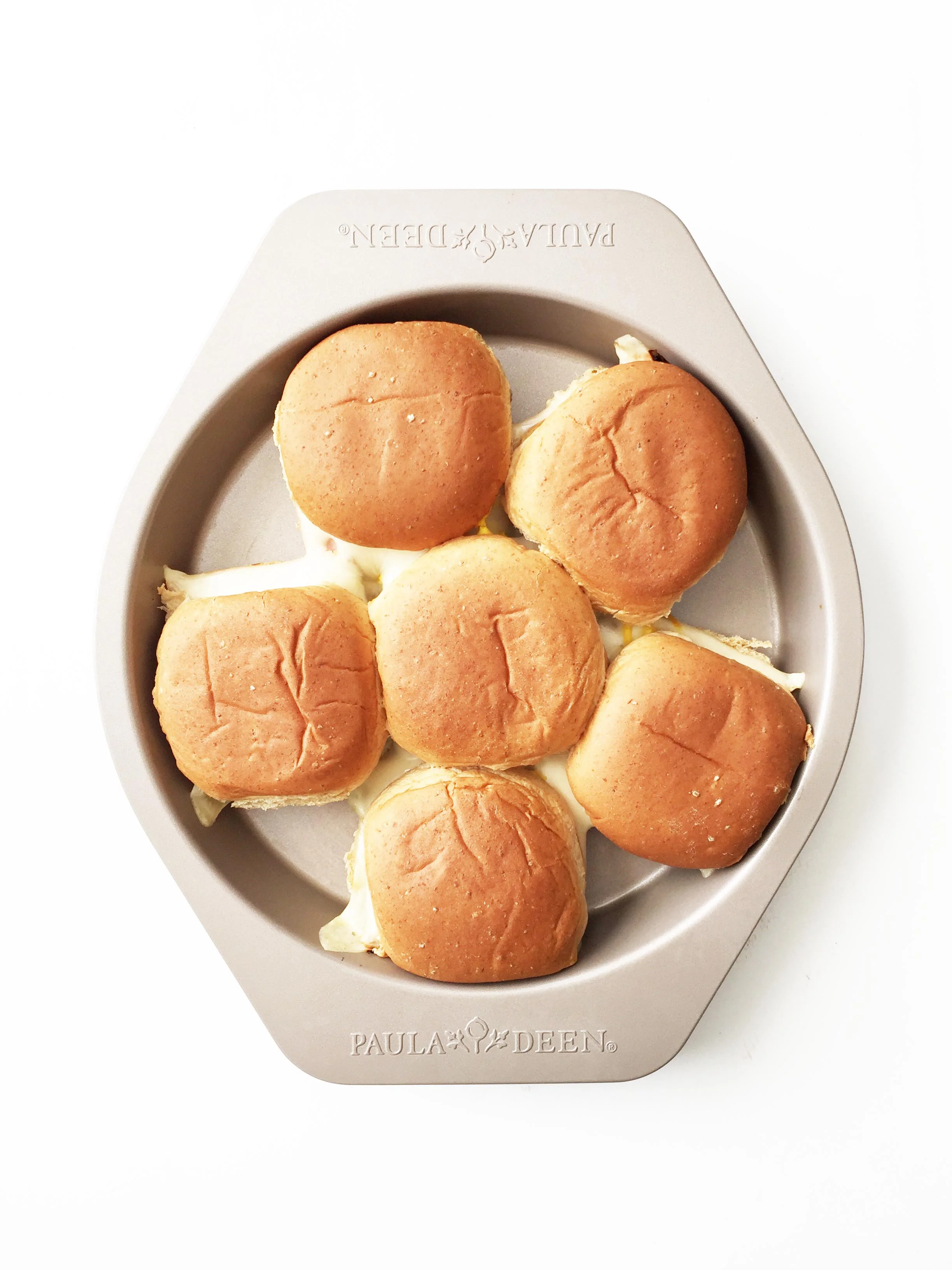 Lightly coat the inside of an 8x8" or 9x9" baking dish with non-stick cooking spray and line the bottom with the bottom half of the wheat slider buns.
