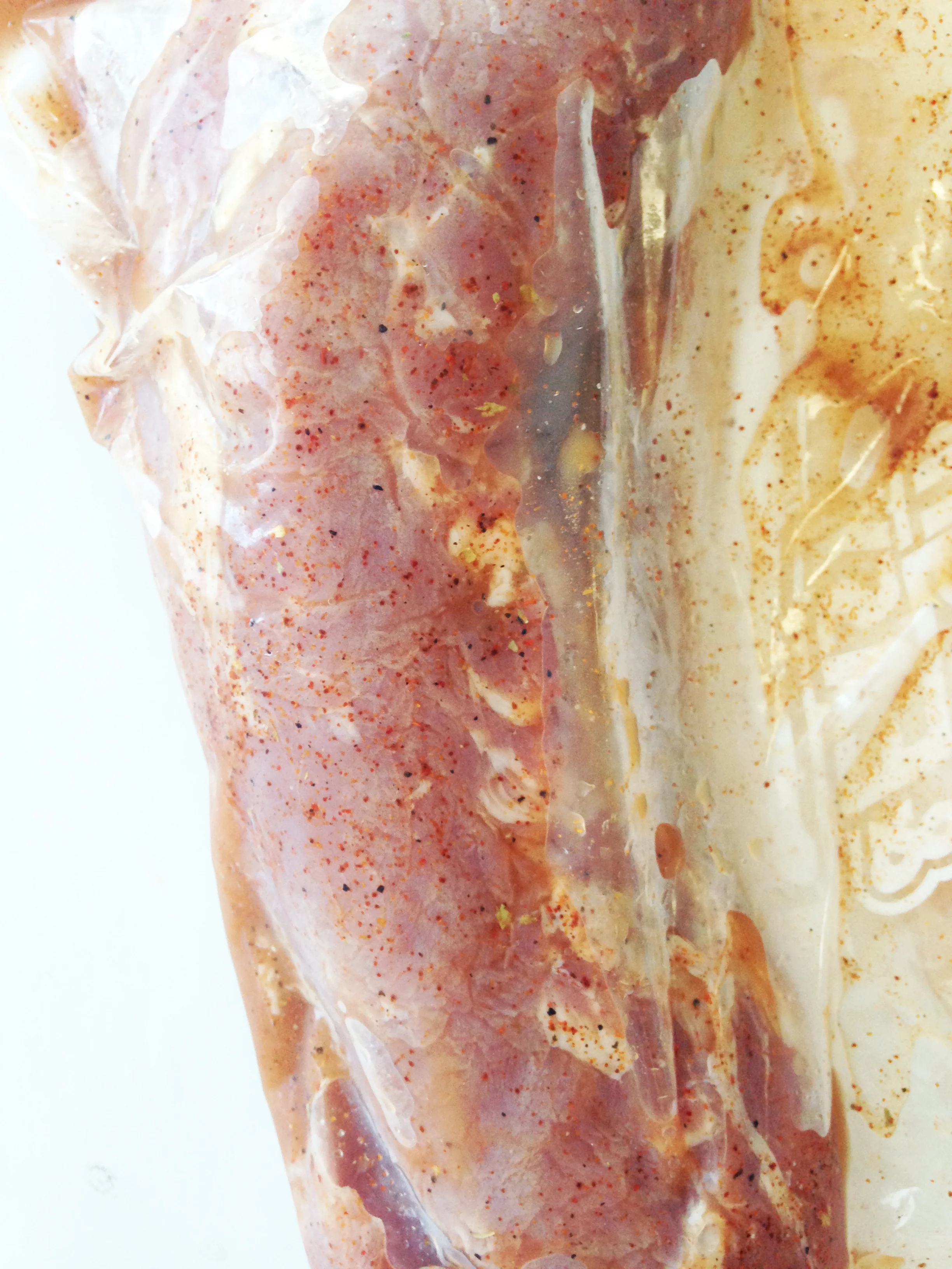 Once marinated, remove the pork from the bag and discard the remaining marinade.