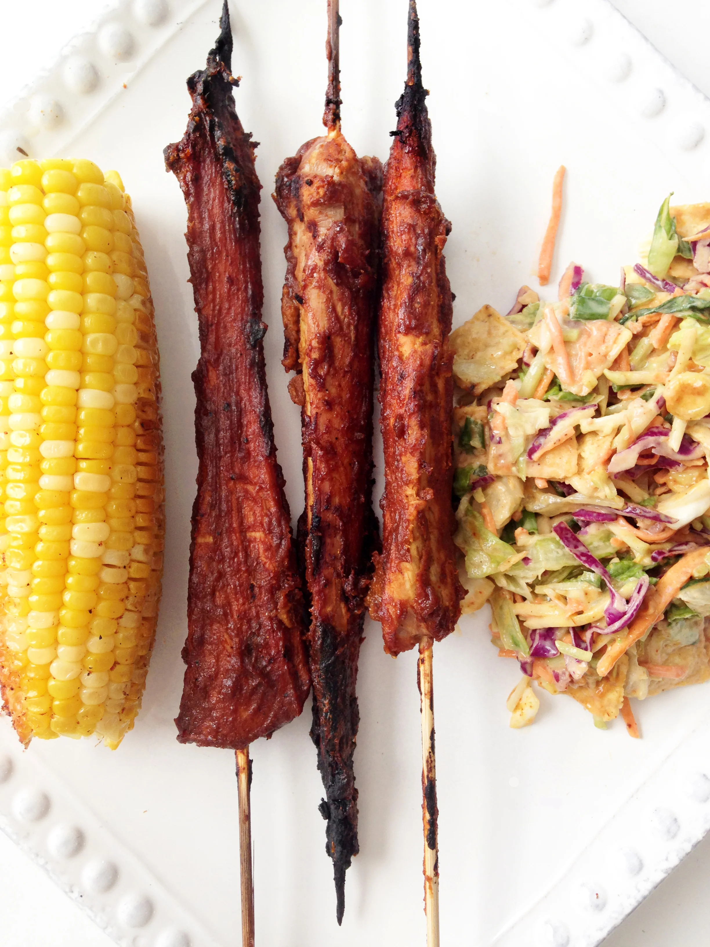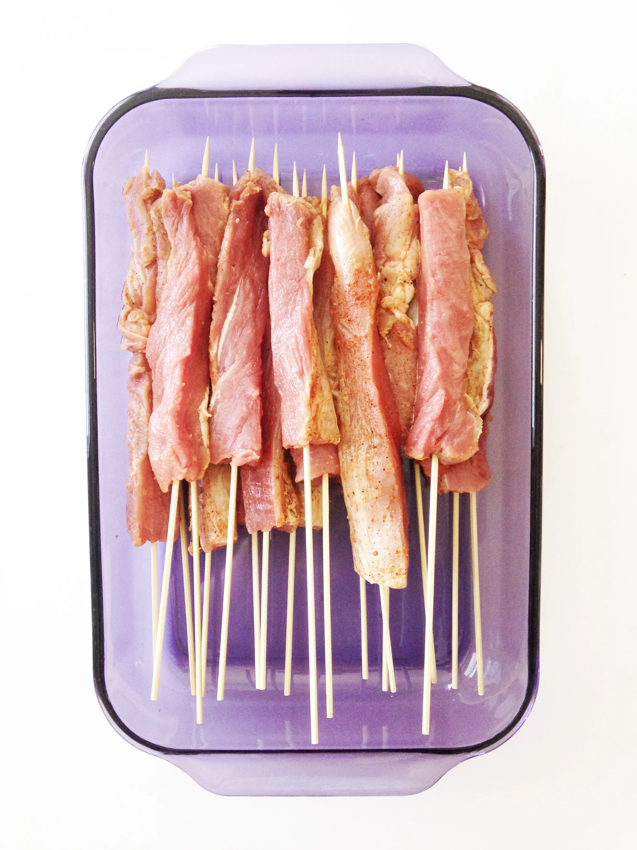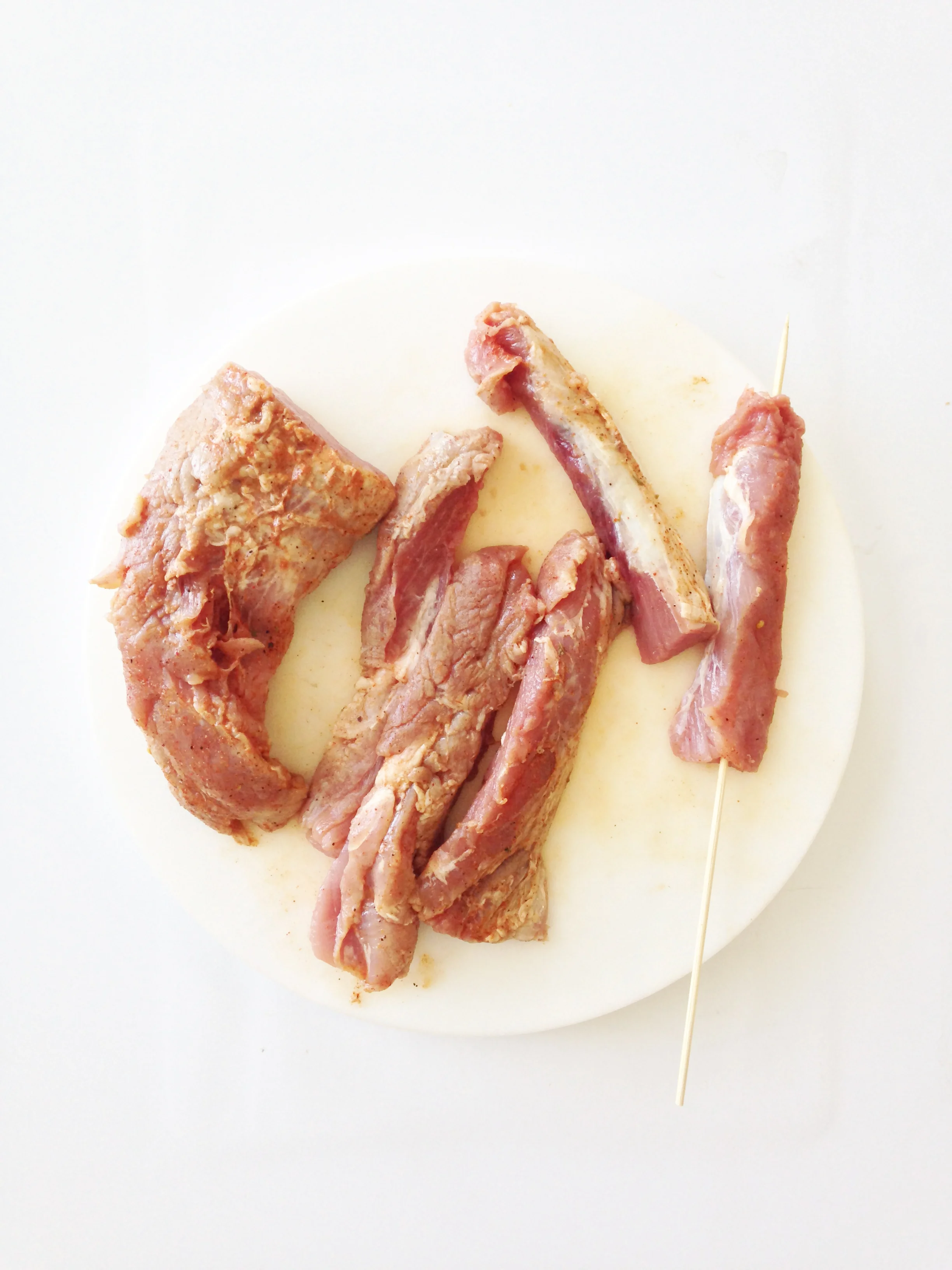 Since I'm a boneless fan, skewers are sort my go-to for faux ribs. It gives me that raw carnivore feel while not grossing me out in the process. Plus, I get to use a leaner cut of meat for my 'ribs' - which meals less calories and less guilt.