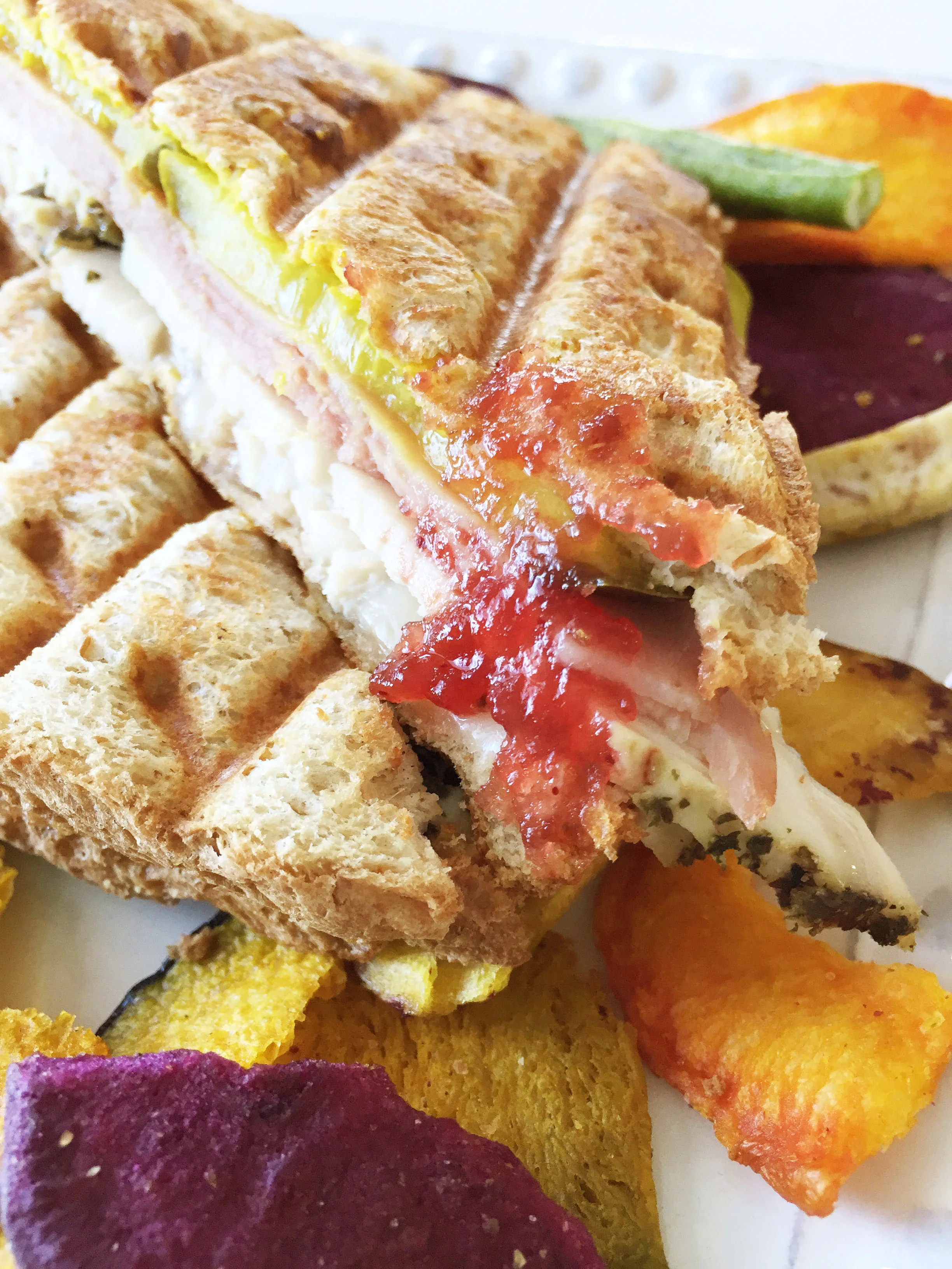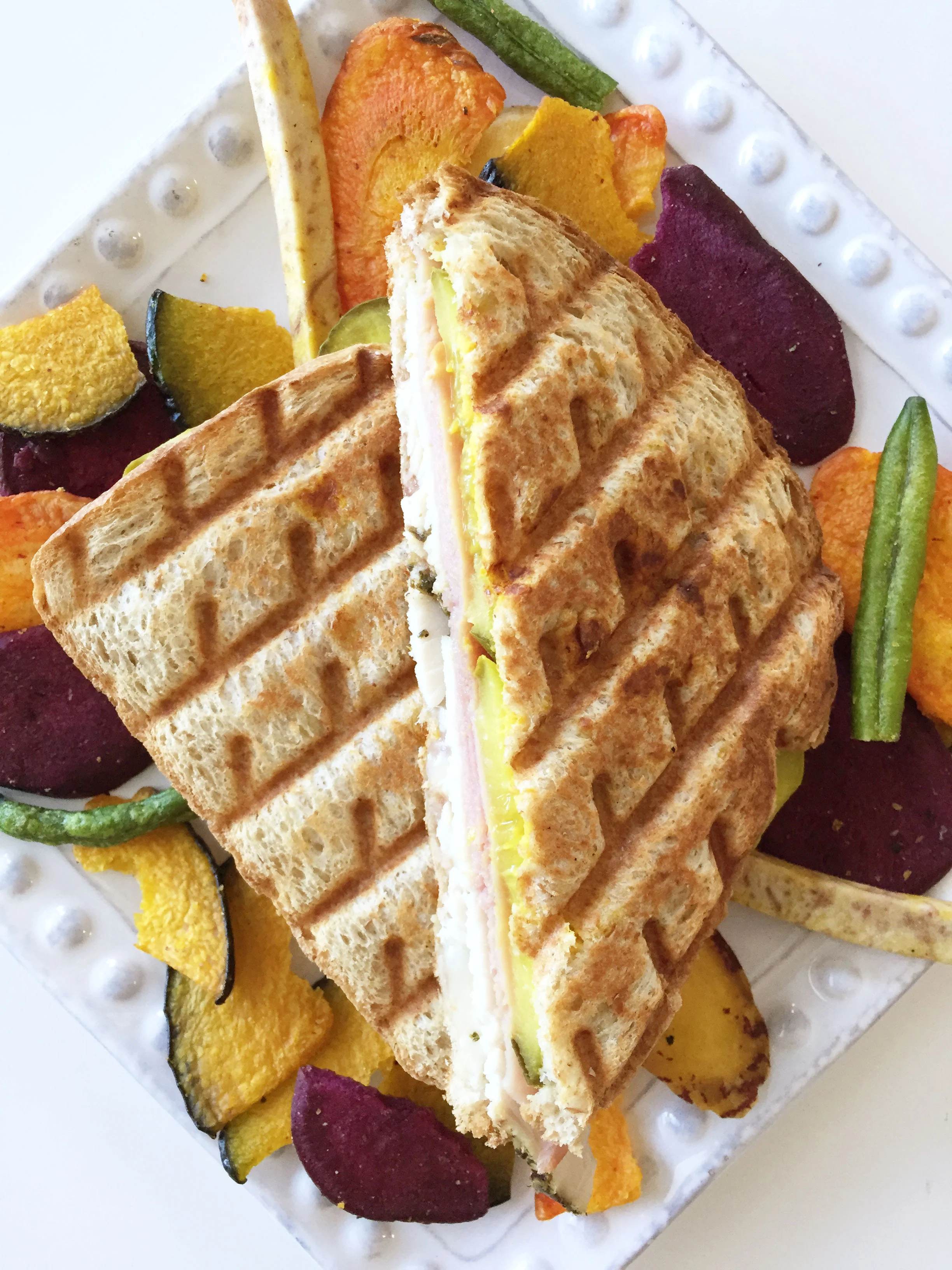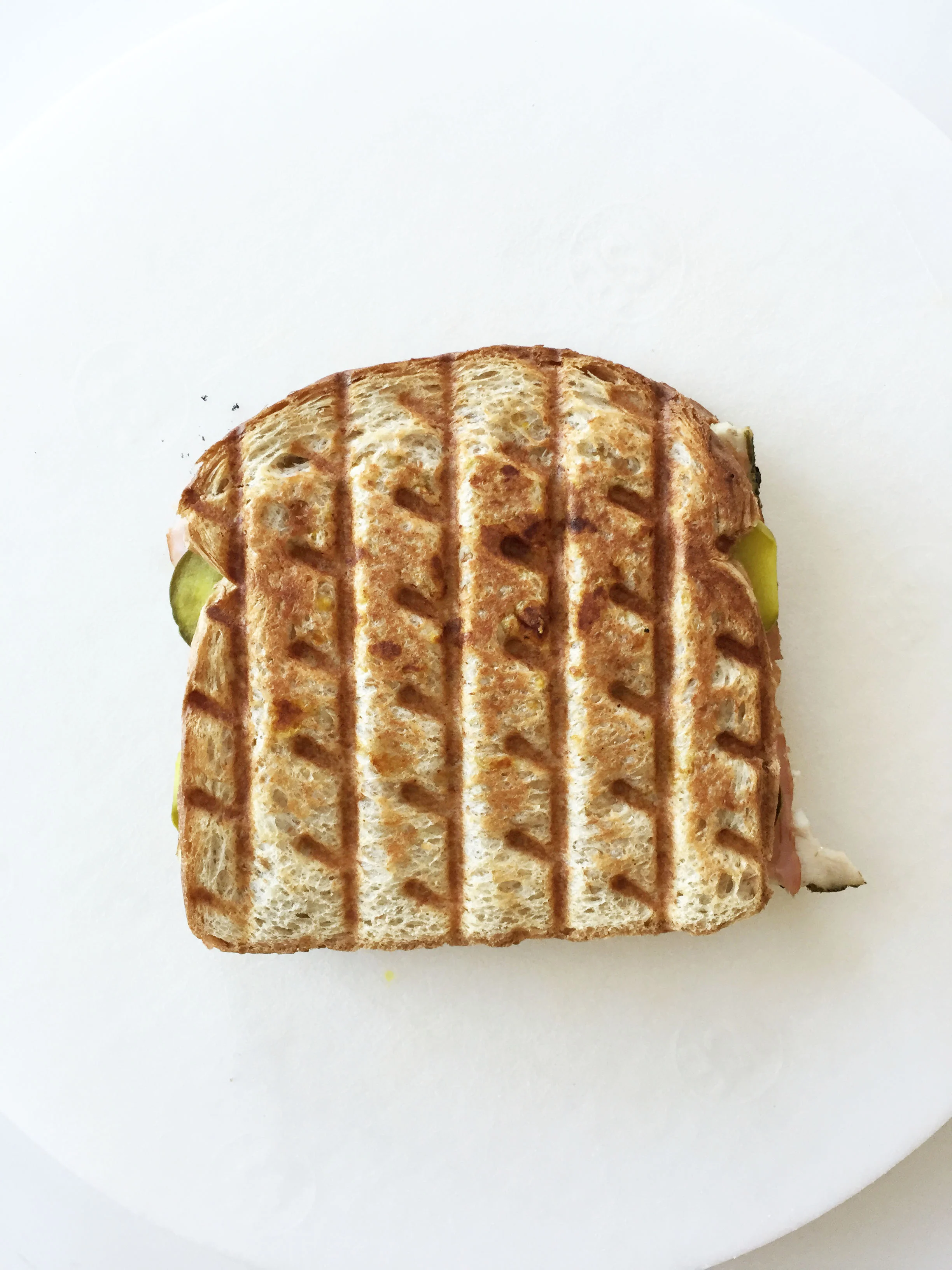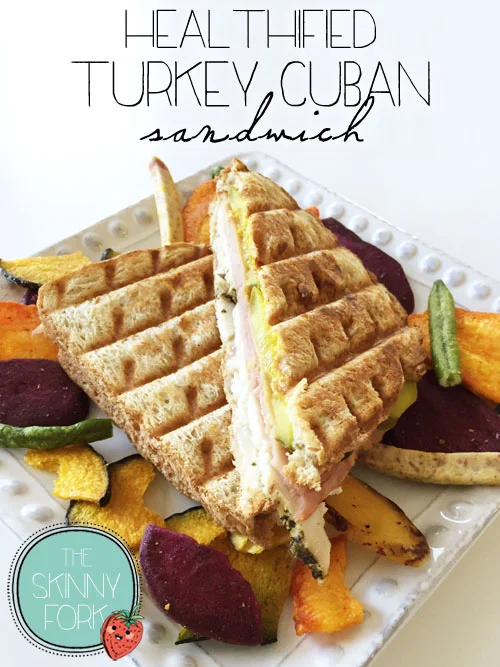 I basically lightened this sandwich up by using a light whole wheat bread, reduced fat cheese, and swapped out that roasted pork for roasted turkey instead. Ta-da! A perfectly healthified take on a cuban sandwich with all the flavor and yet way more healthy than the traditional.