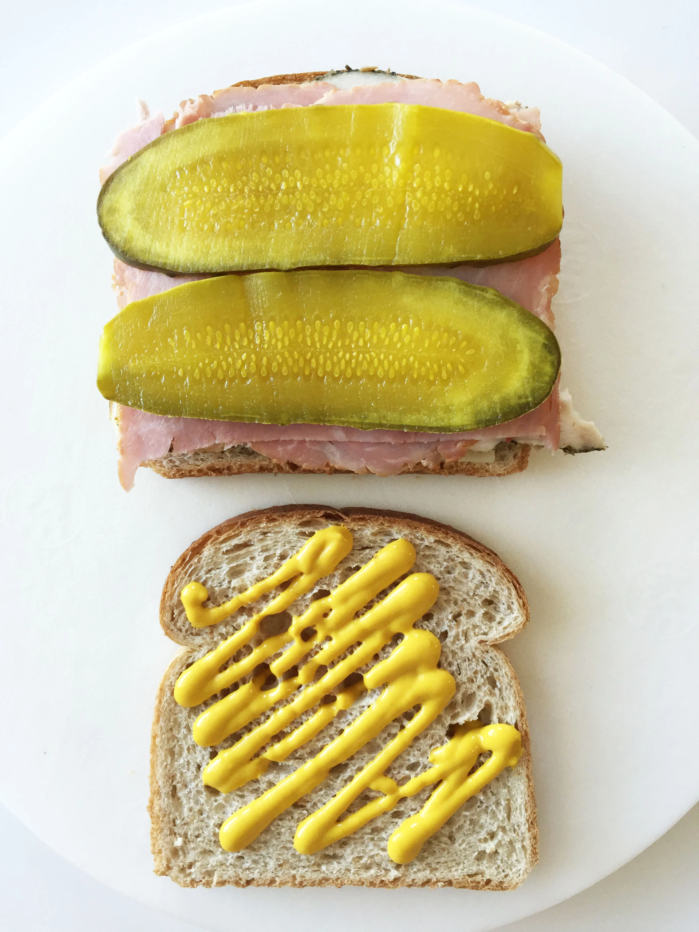 Oh, and if you happen to have any leftover cranberry sauce, feel free to put a little smear of that on the bread along with the mustard just to tickle those tastebuds a bit more.