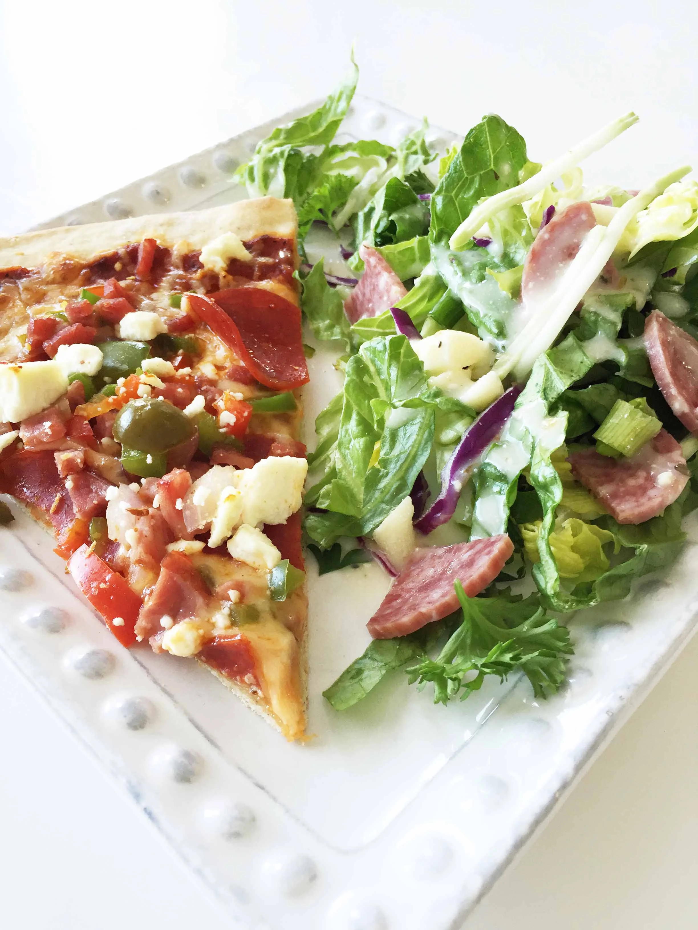 As you can see, I even served mine with a nice chopped Italian salad for a healthy, nutrient and vegetable packed meal that left me full and satisfied without the guilt on my gut or my wallet!