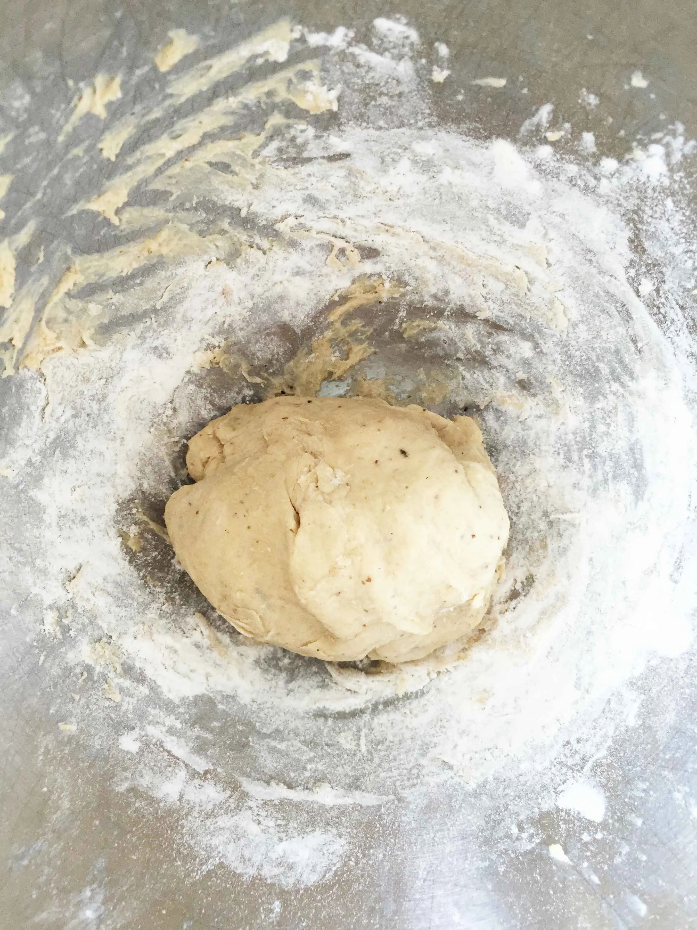 Add in another 1/4 c. of all-purpose flour gradually until the dough starts to form into a ball.
