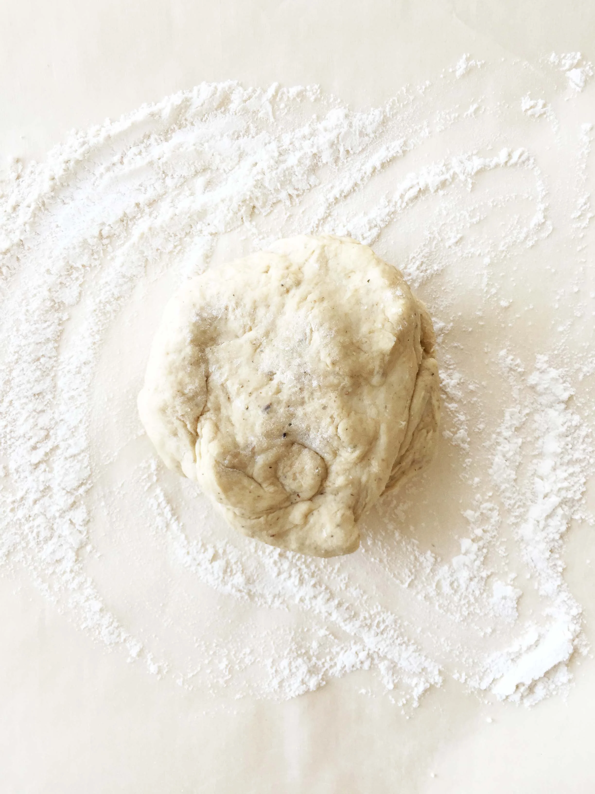 Knead on the floured surface until the dough is smooth and elastic; about four minutes.