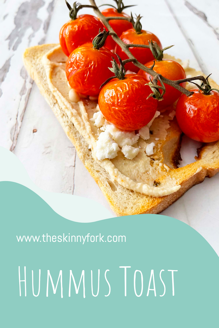 A colorful assortment of cherry tomatoes and pine nuts are set on top, creating a vibrant and fresh medley. A sprinkle of crumbled feta cheese adds a tangy kick, while the bit of extra-virgin olive oil in the hummus brings a touch of richness. This open face hummus Mediterranean toast is a delicious and wholesome way snack on or have as part of a light lunch.
