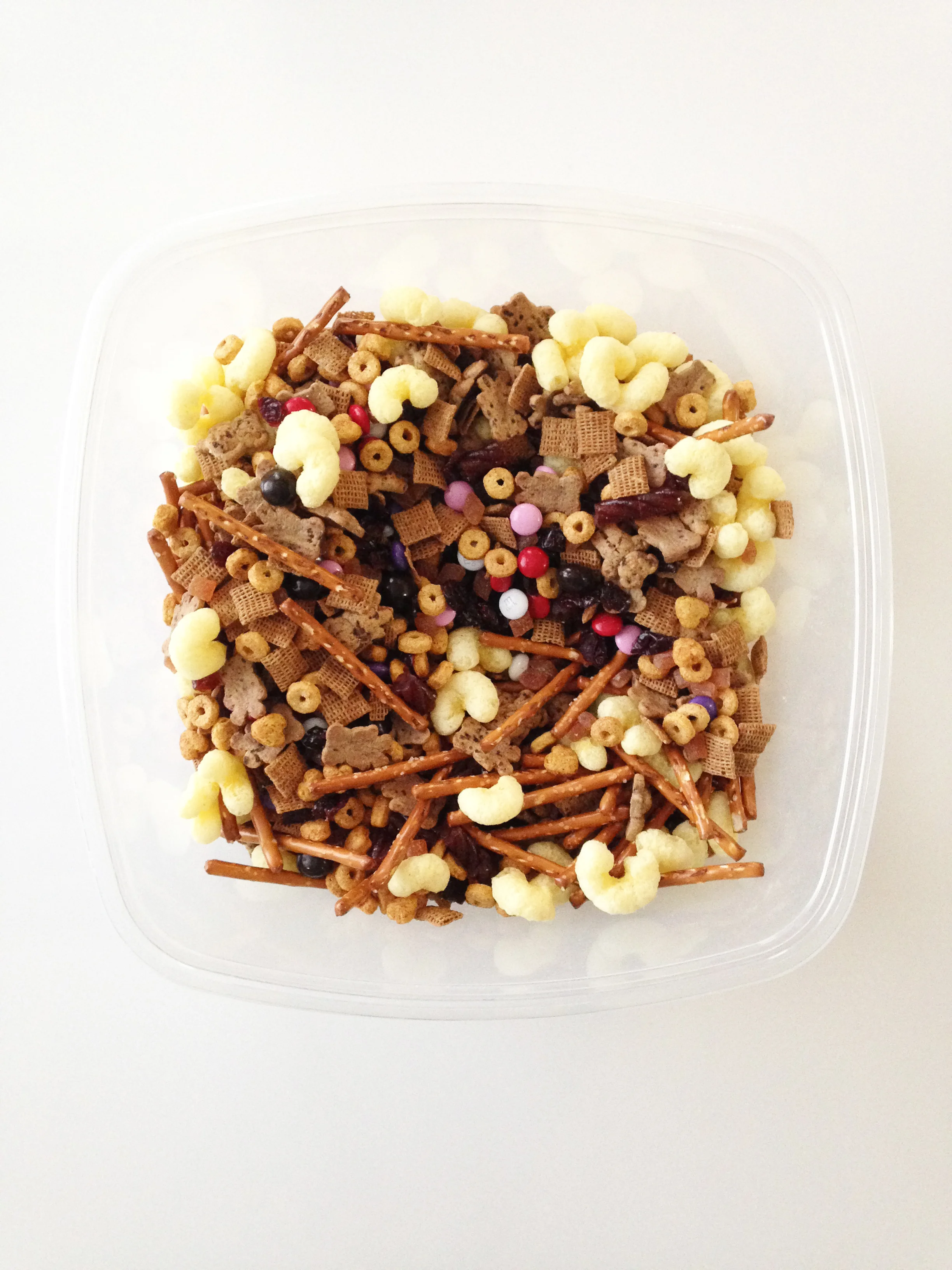 The mix also has to be school safe so that I can toss some into her lunch box on days that she goes to school. So... no peanuts here!