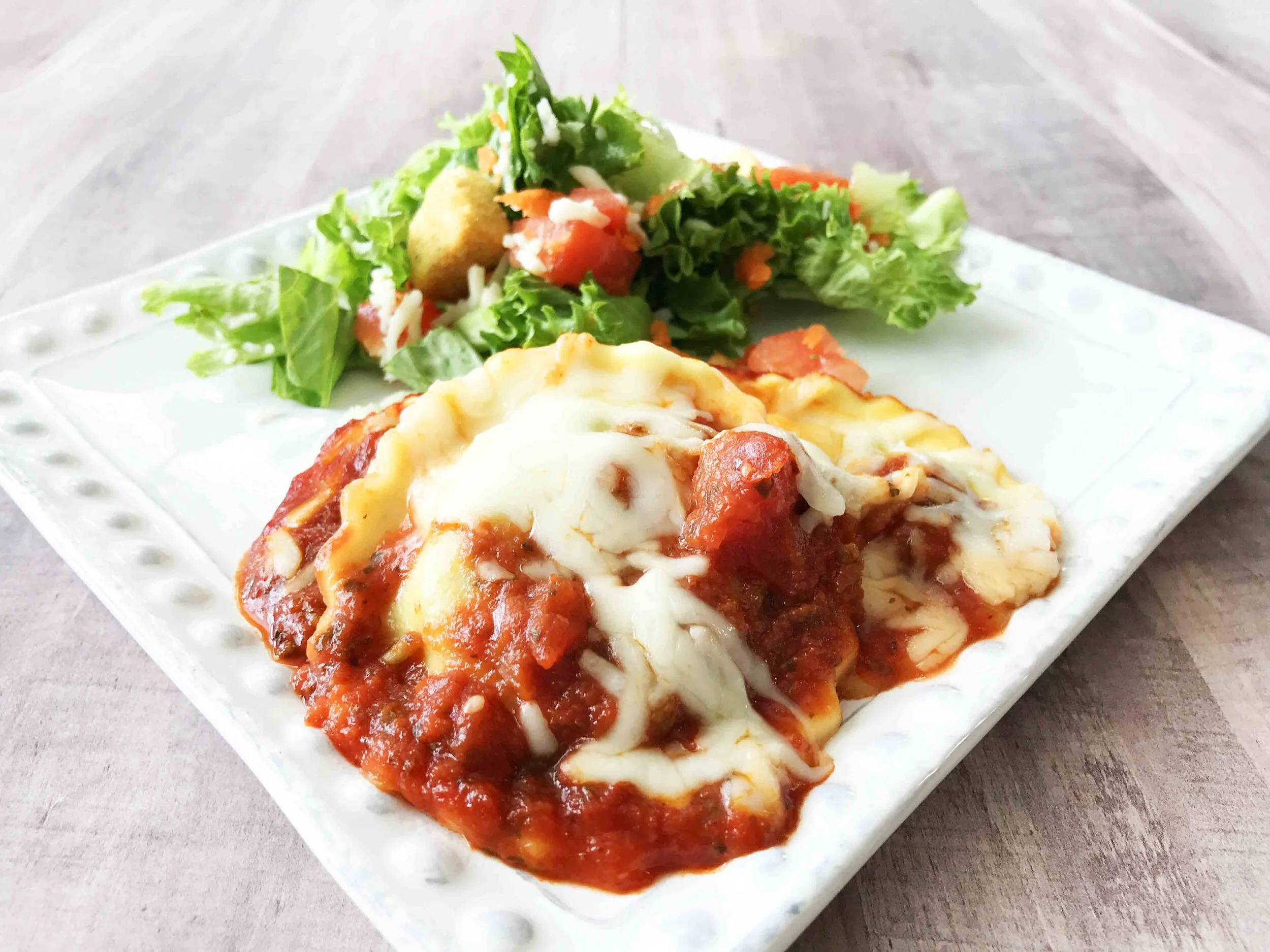 Need a quick and easy dinner idea? This 'Lazy Lasagna' or Baked Ravioli is just about as easy as dinner comes. With just three, yes count them THREE, ingredients in the entire dish and all of 5 minutes of hands on time, this dinner is not only easy, it’s a family favorite!