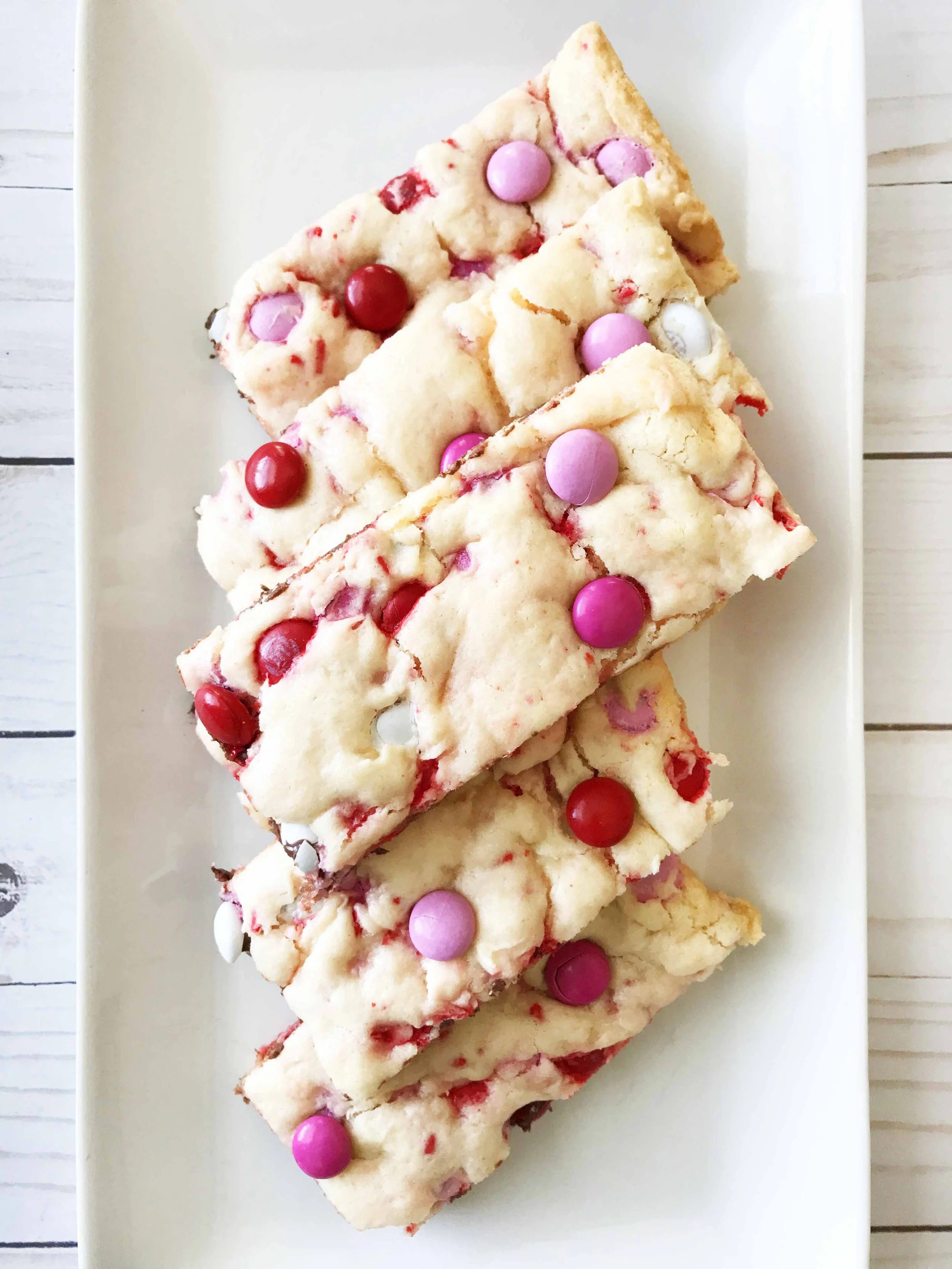 TheSkinnyFork.com Feeling lazy but also what to give your sweet some sweets? Then these Lazy Valentine Cookie Bars are here to save the day! Cake mix and just a few other ingredients make these cookie bars easy peasy! Prep Time: 5 Minutes • Cook Time: 20 Minutes