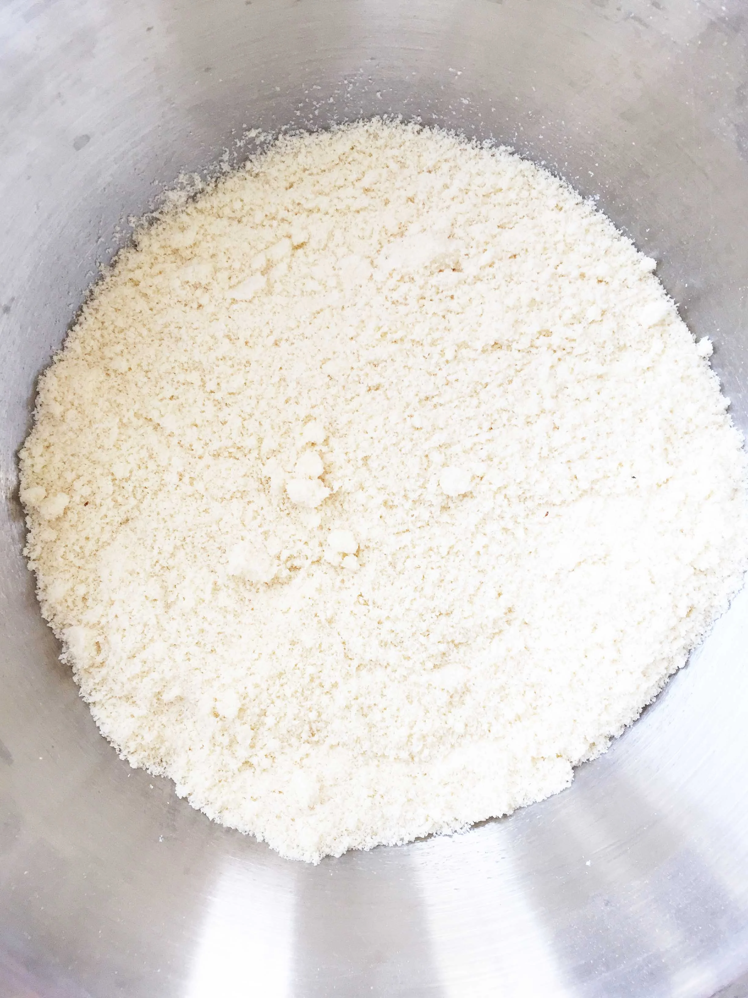 In a medium mixing bowl, sift together the 2 C. Bob’s Red Mill Almond Meal/Flour, 1/4 C. Coconut Flour, 1/4 C. Sugar, 1/4 C. Natural Sweetener, 1 Tsp. Baking Powder, and 1/8 Tsp. Salt; set aside as well.