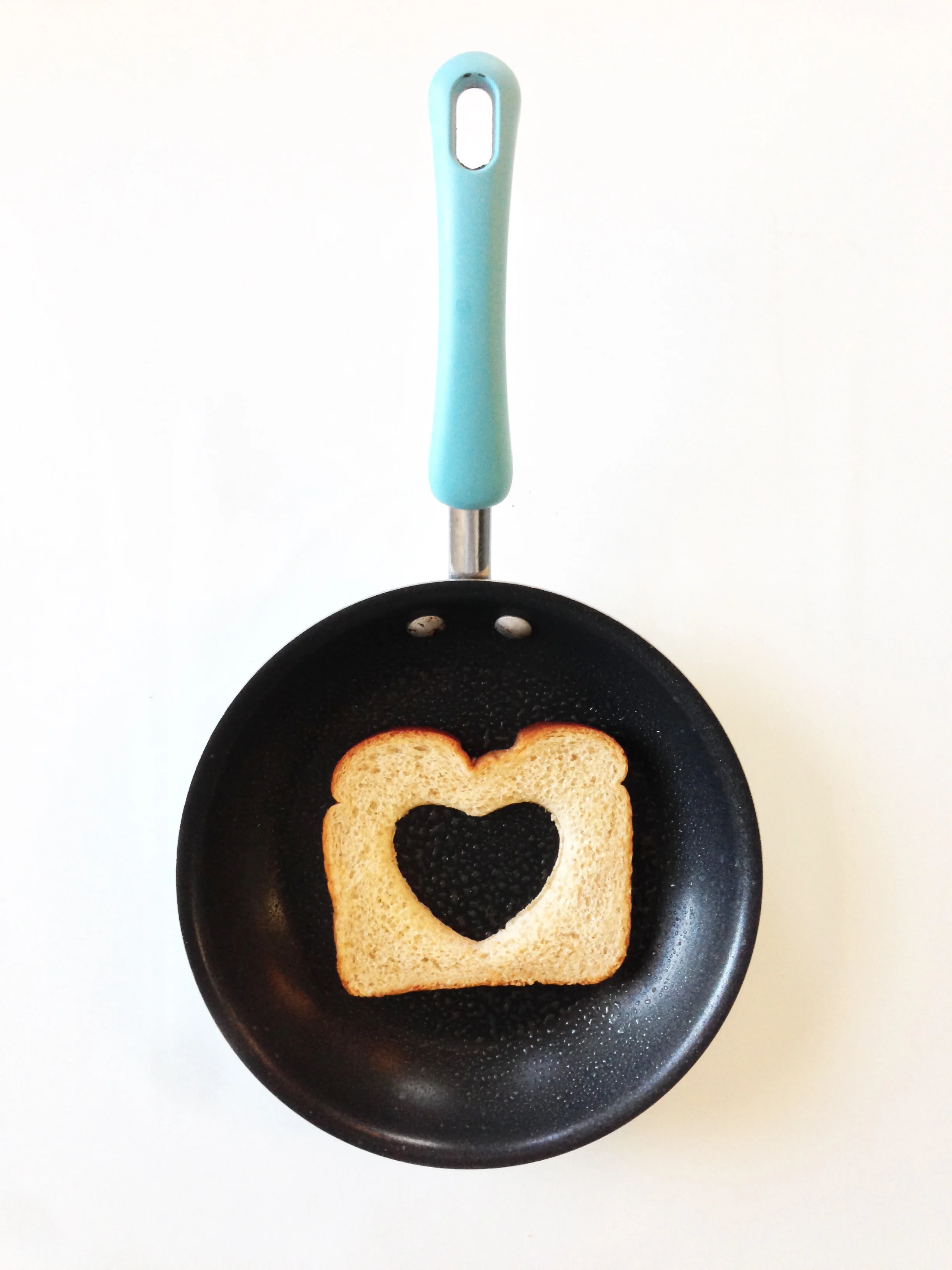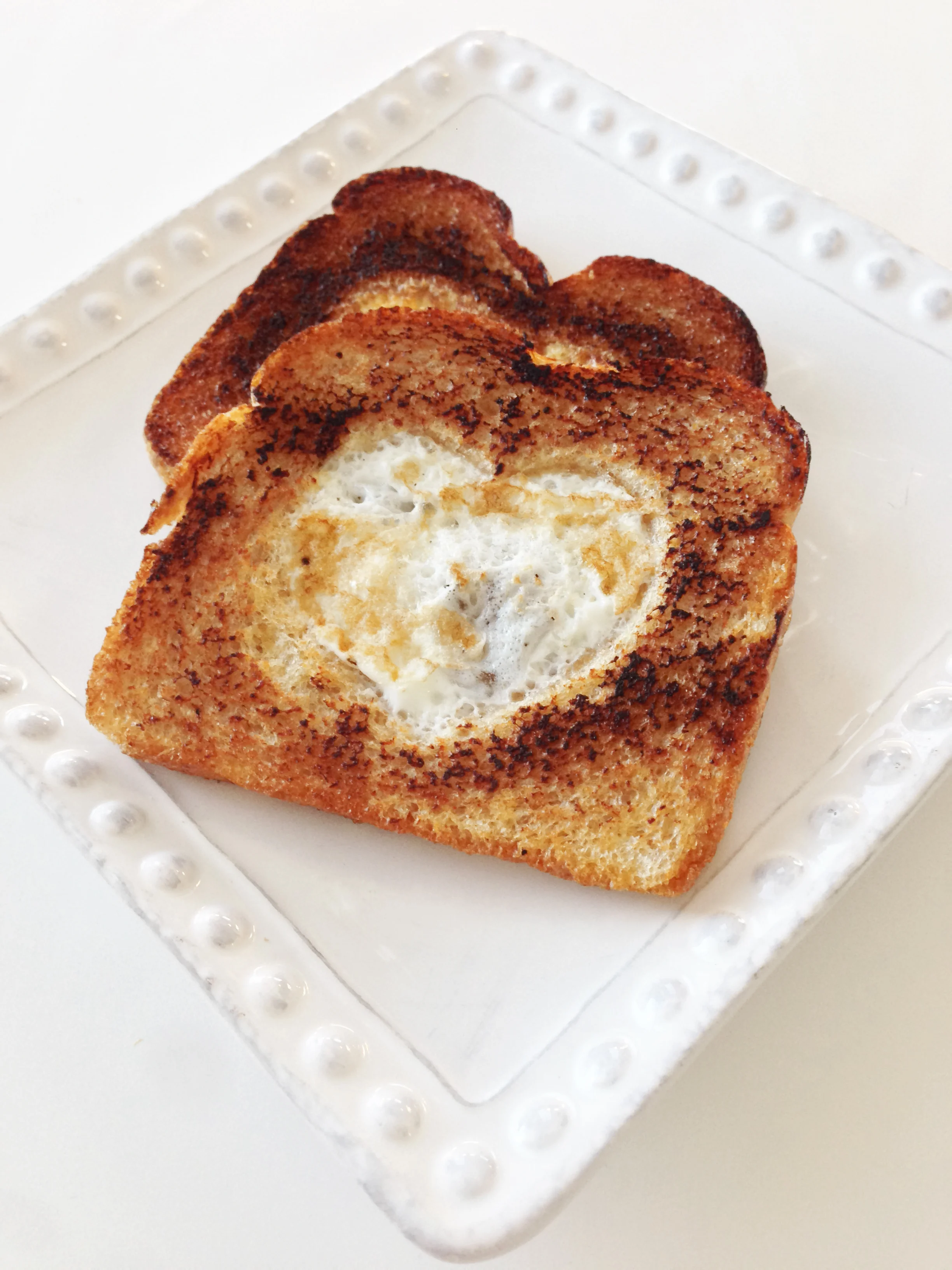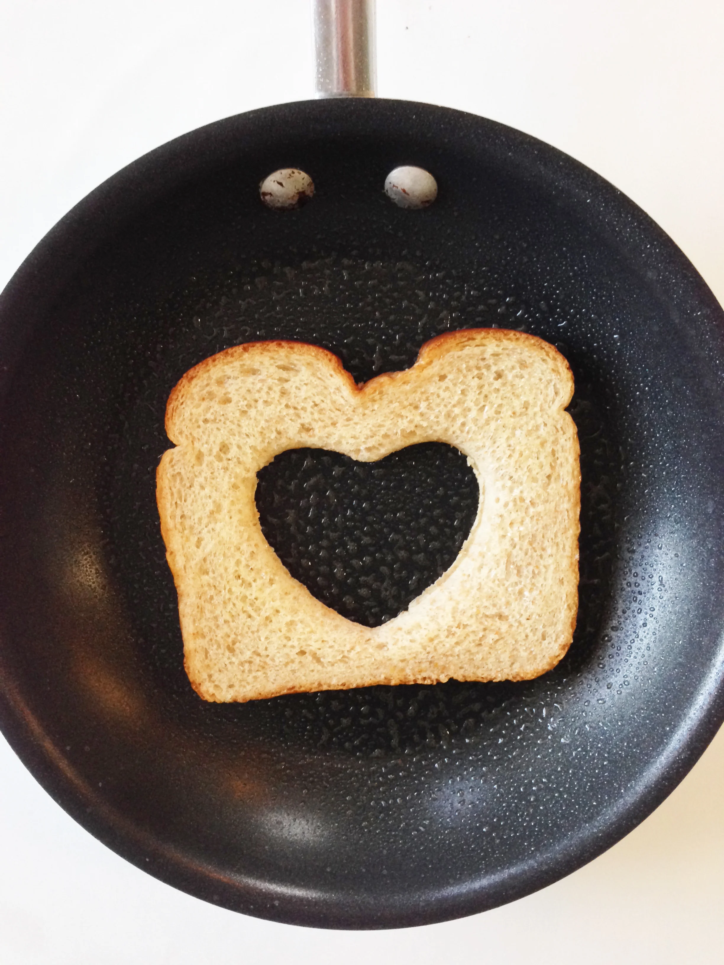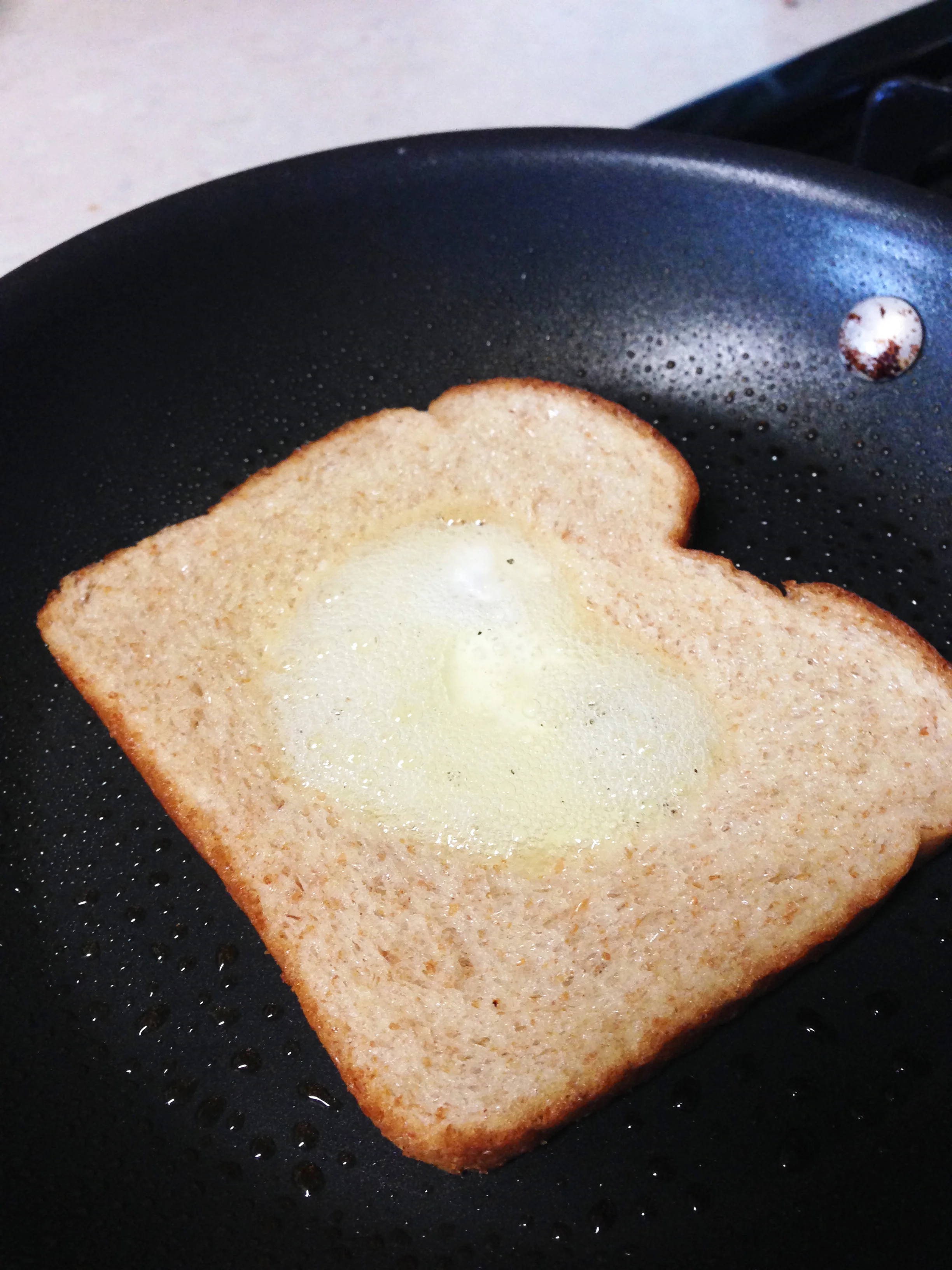 Use a cookie cutter of your choice to form a 'hole' in the middle of your slices bread.