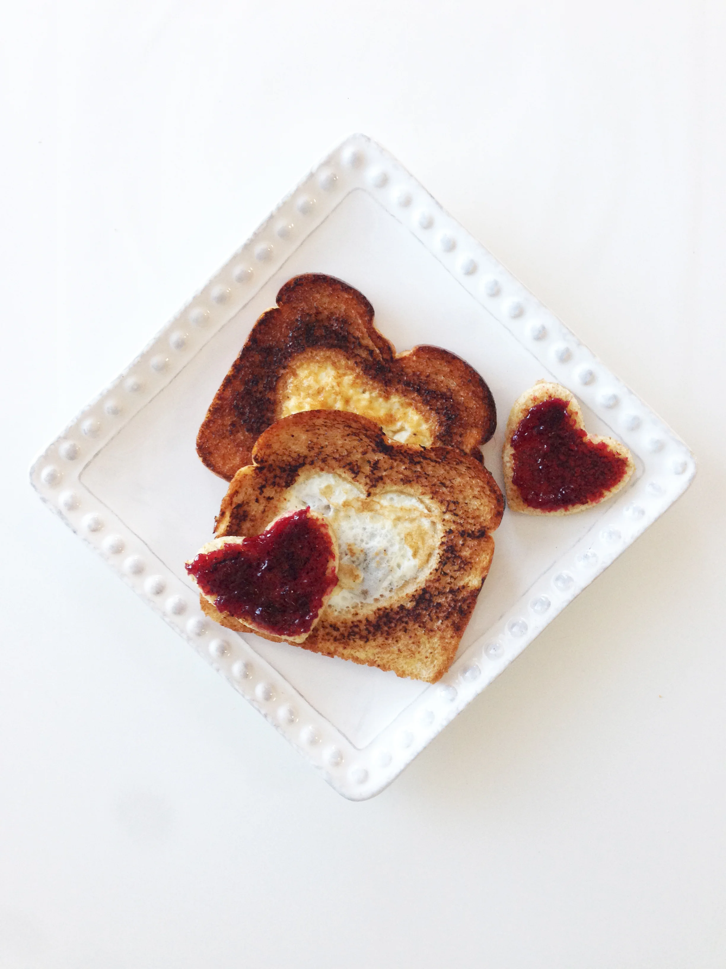 Remove to a plate and repeat for the remaining slice of bread and cut out center pieces!