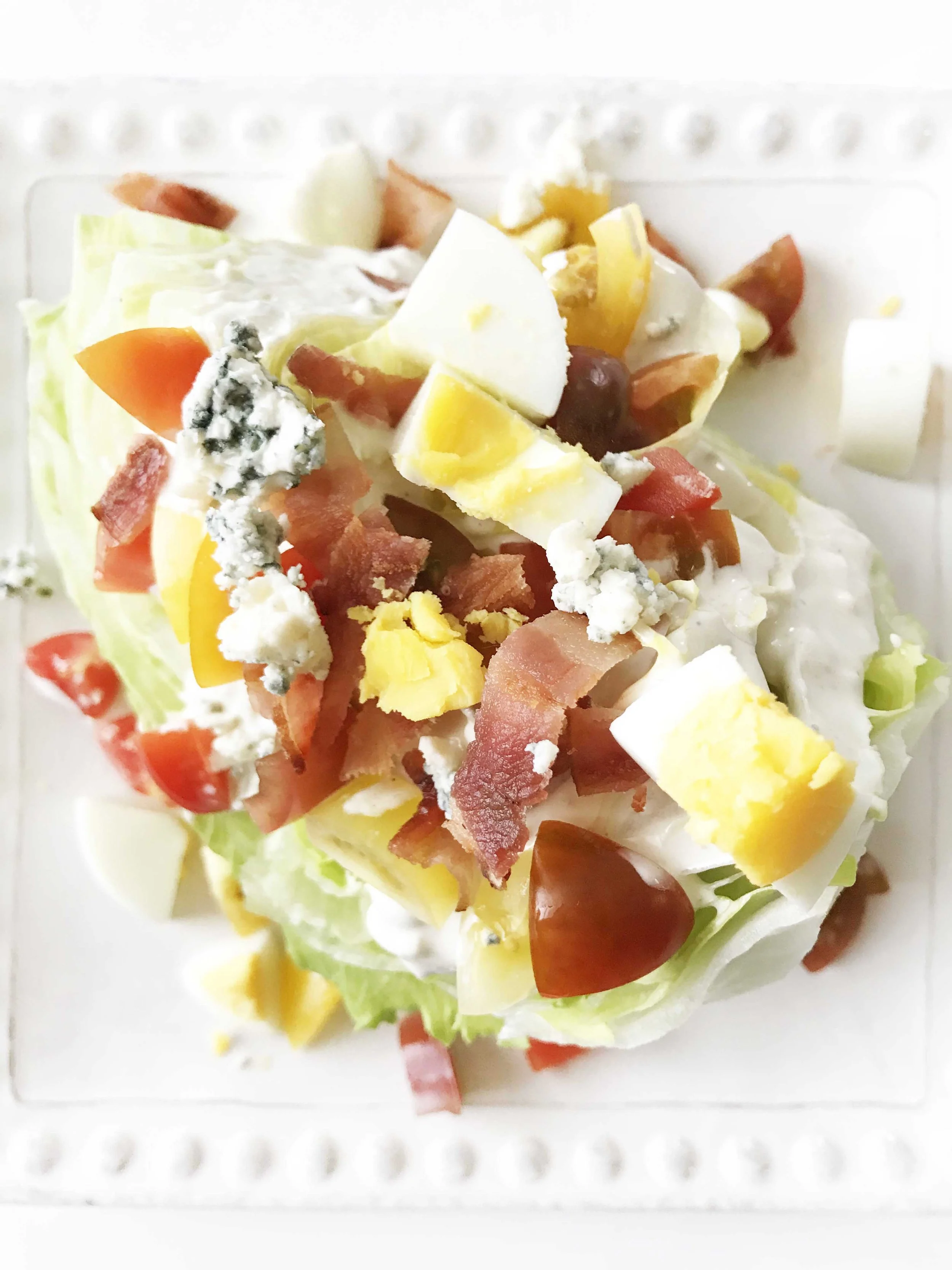 I'm talking bacon, egg, cheese, and of course... tomatoes. This is the wedge salad of my dreams and that homemade dressing is an absolute must! It took me a few good years and a lot of trial and error to get the most amazing healthified blue cheese dressing recipe that you'll come across.