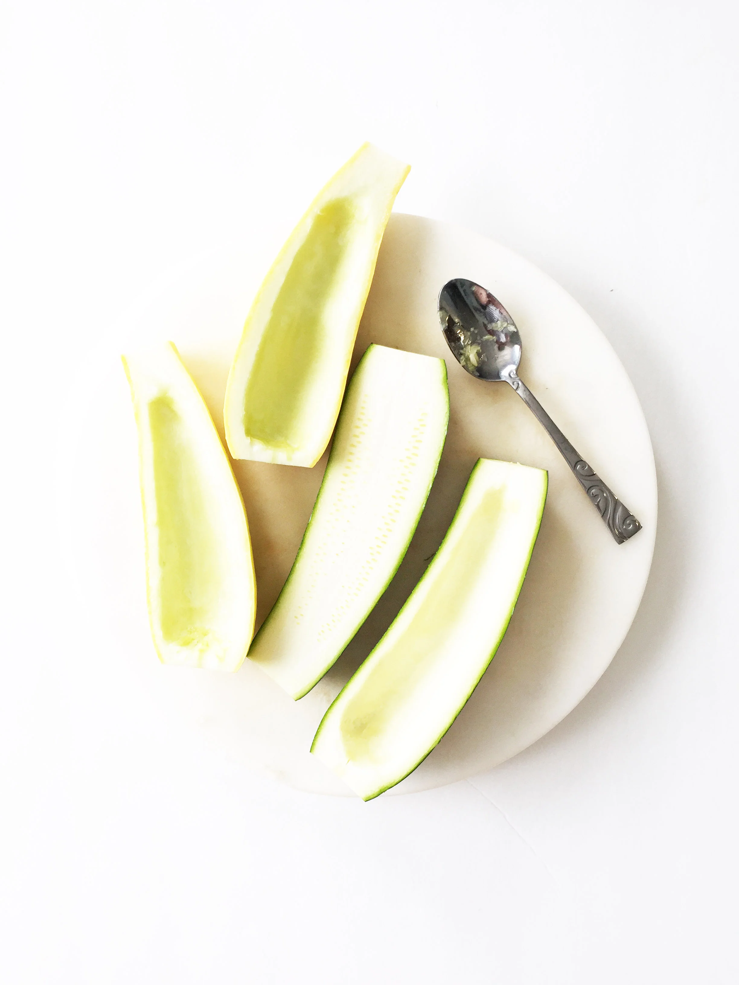 Slice the squash in half and scoop out and discard the flesh in the middle to leave shells that are about 1/4" thick.
