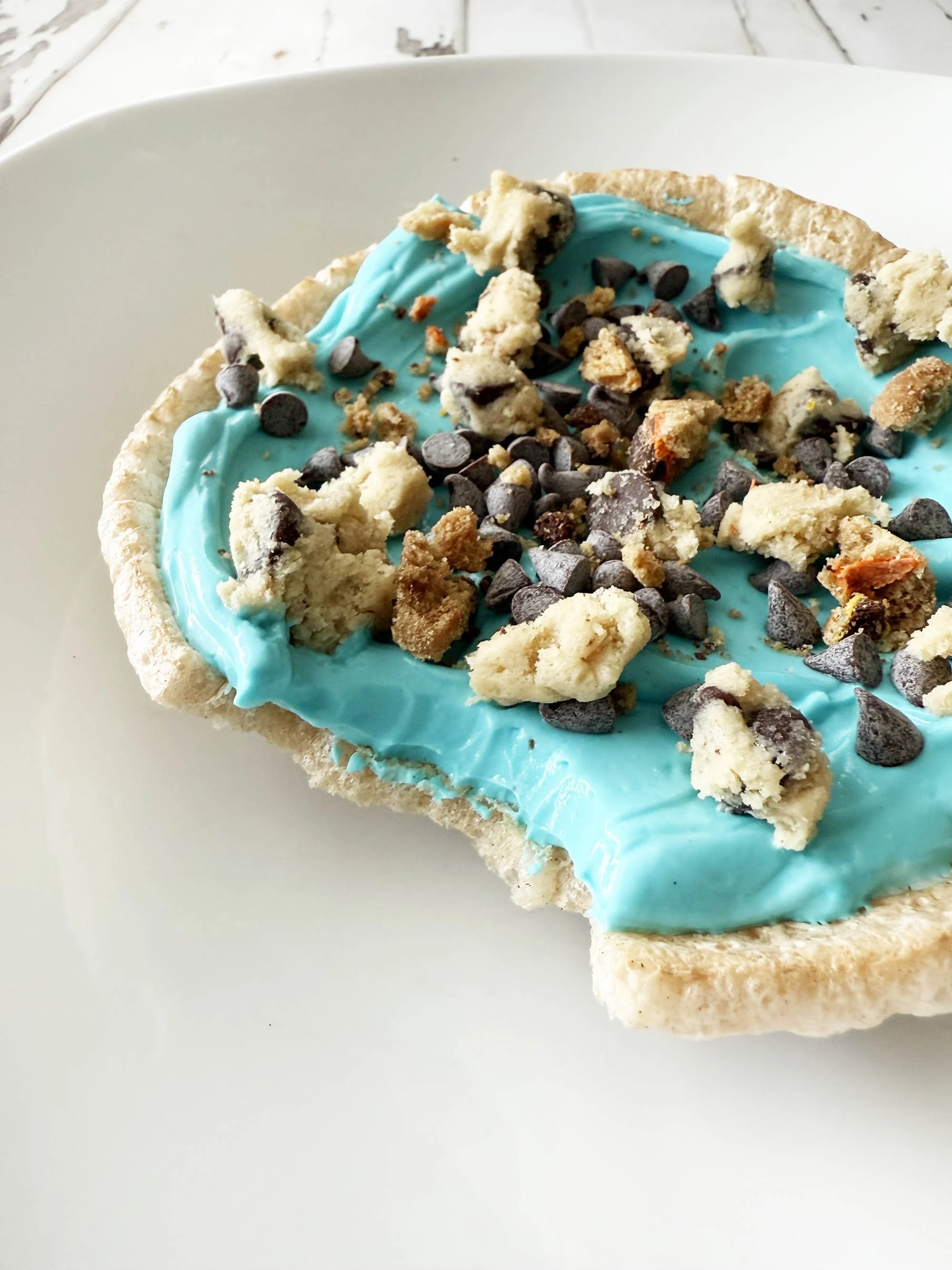 - Top with Chocolate Chip Cookie Dough pieces and 2 Tsp. Mini Chocolate Chips.