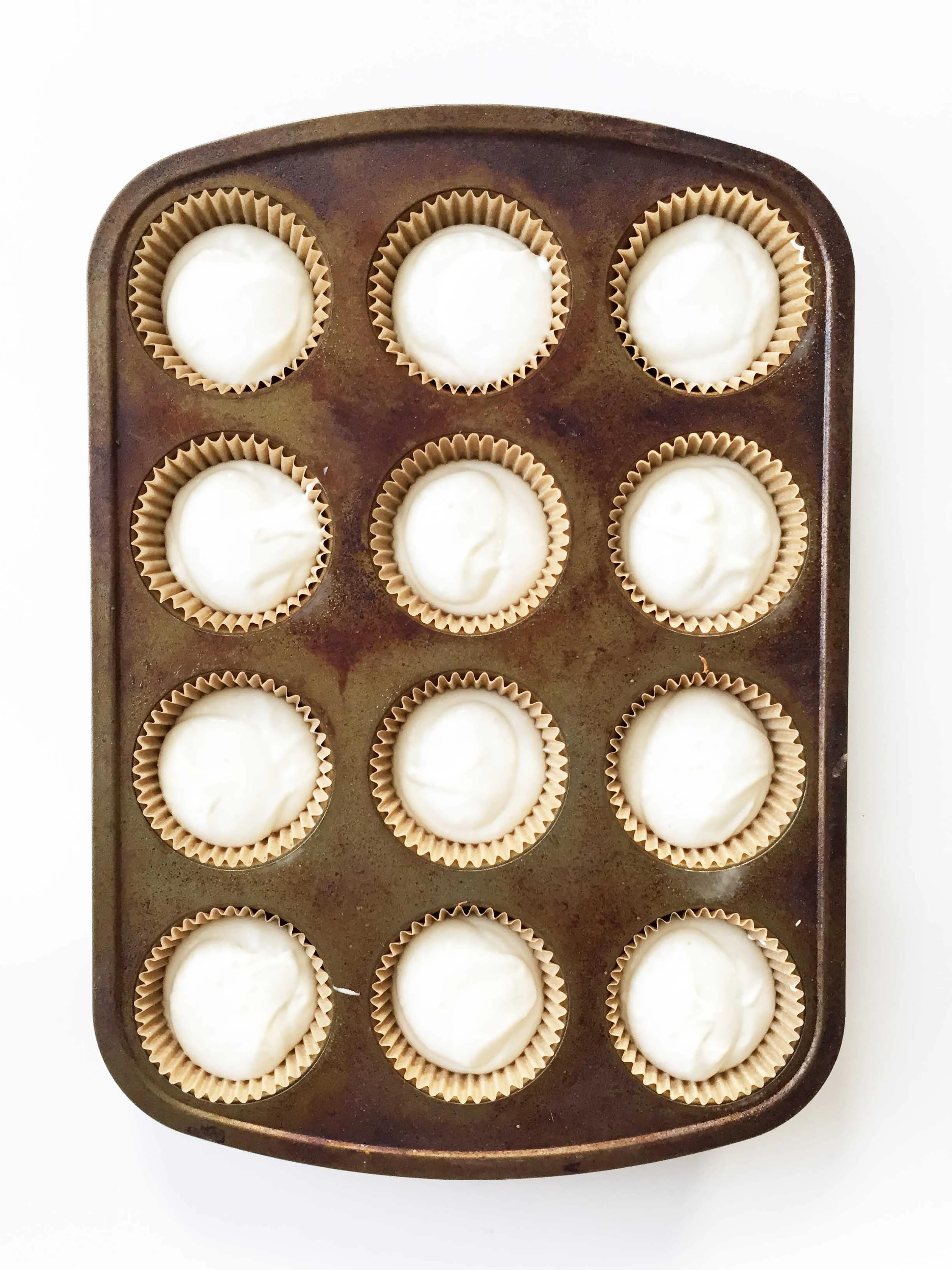 Preheat the oven to 350 degrees F. and line a cupcake pan with cupcake papers.
