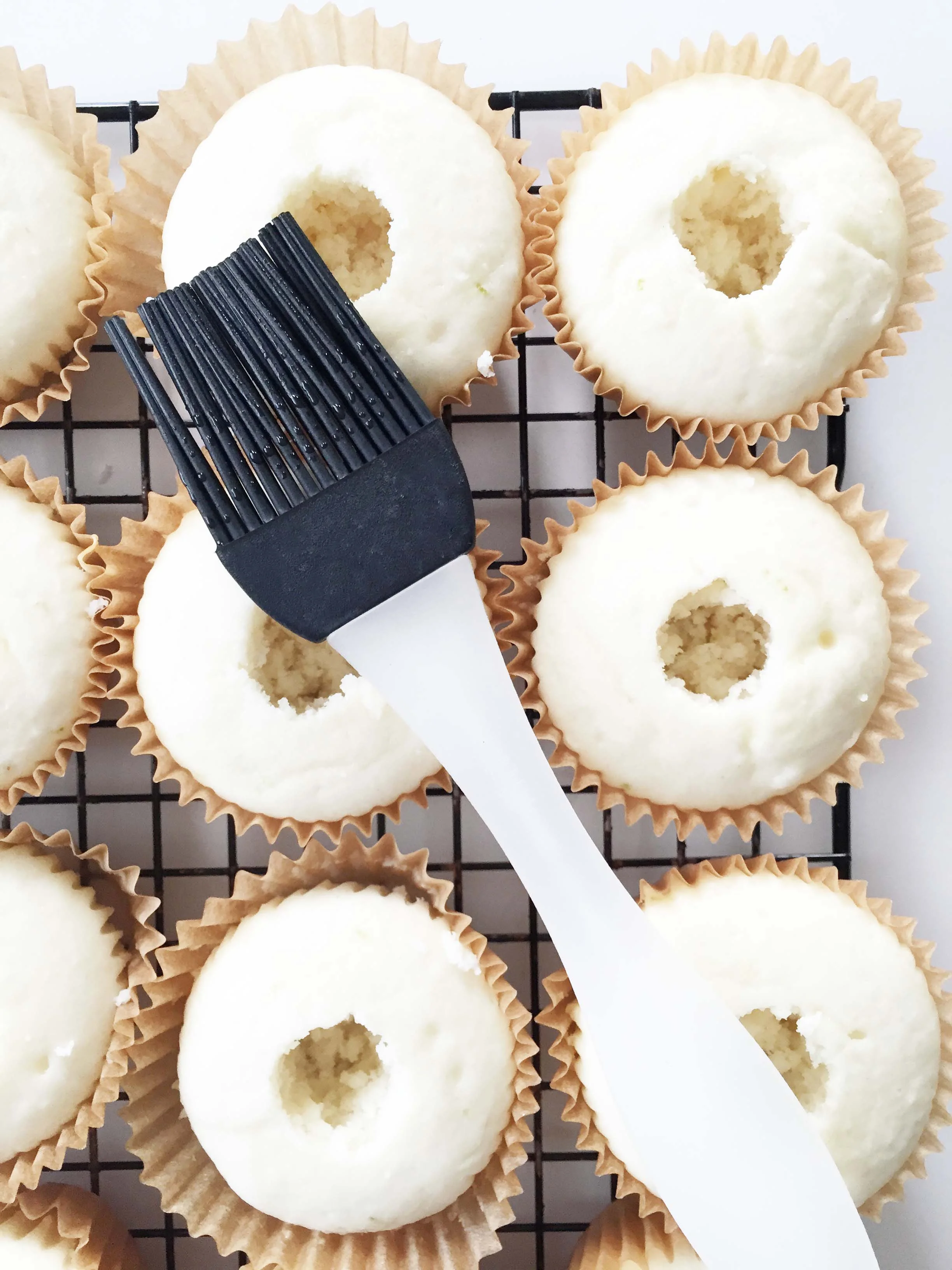 Brush the tops of the cupcakes with the remaining 2 tbsp. tequila. You don't want to 'soak' the cupcakes. Just give them a little added tequila essence.