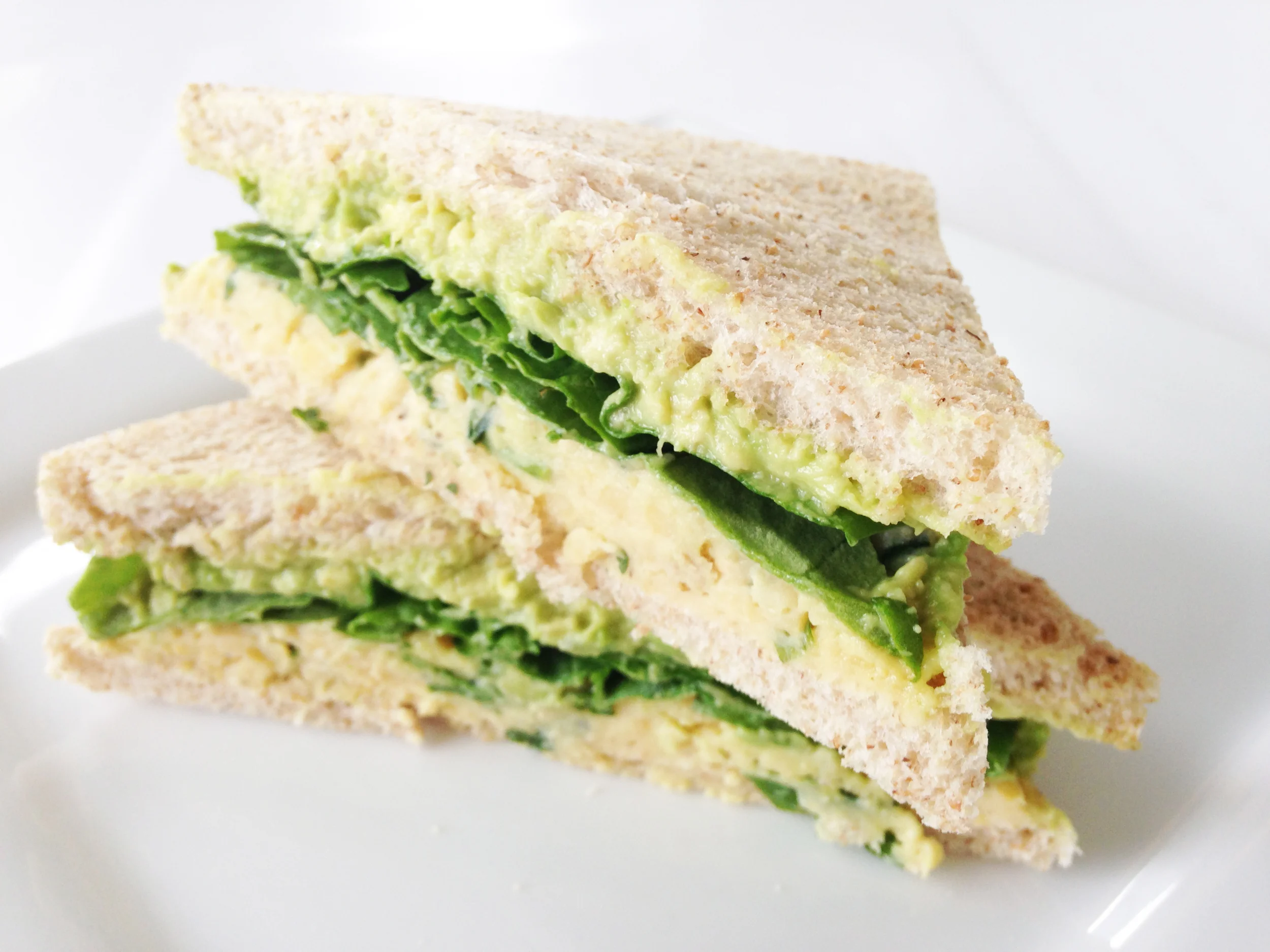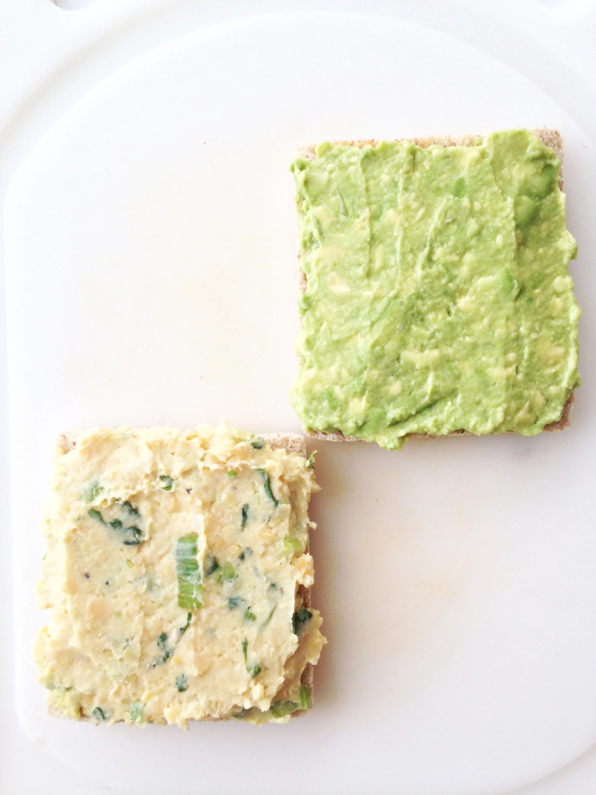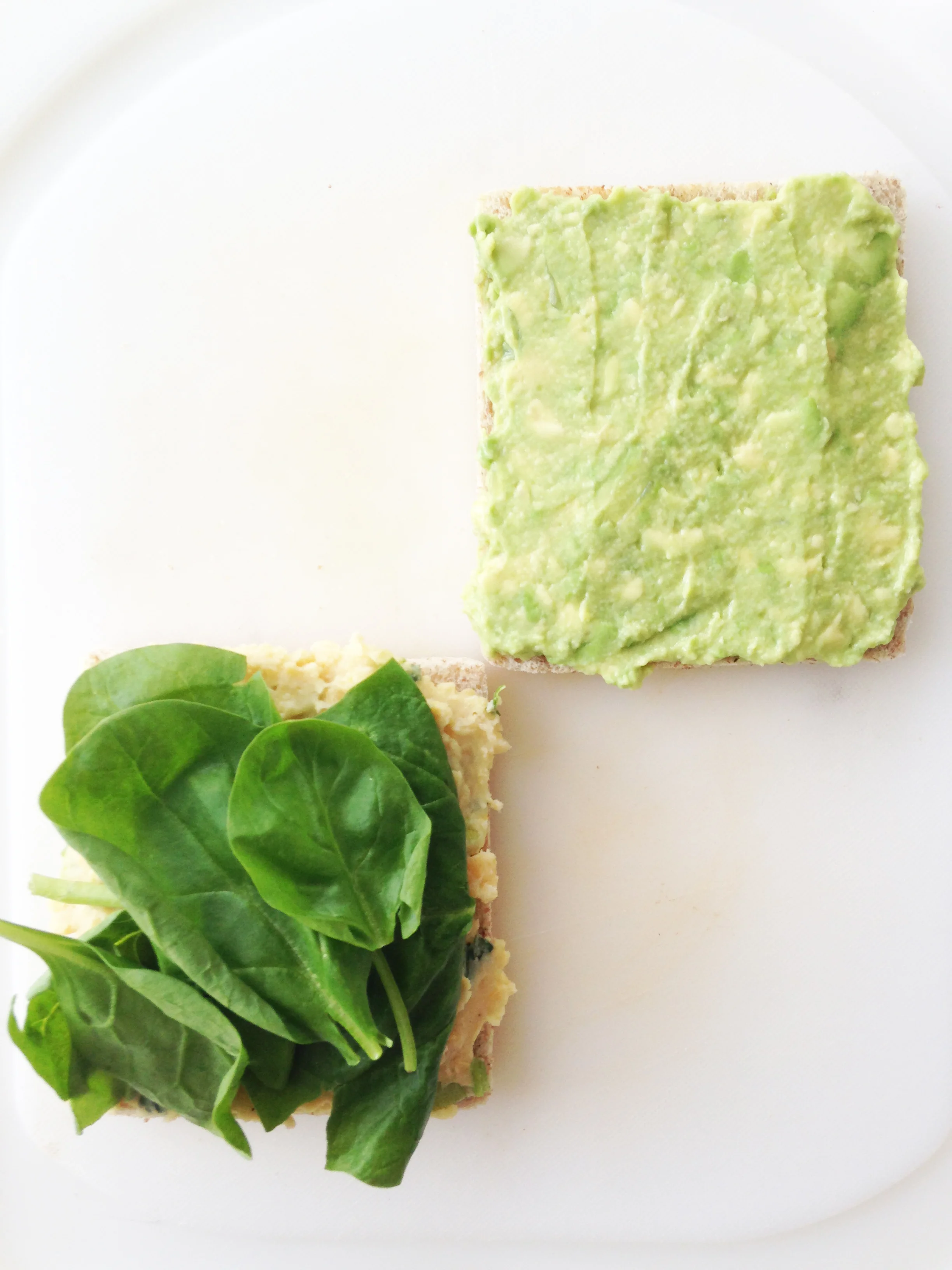 Divide the mixtures evenly among the sandwiches and spread the chickpeas over one slice of bread and the avocado over the other.