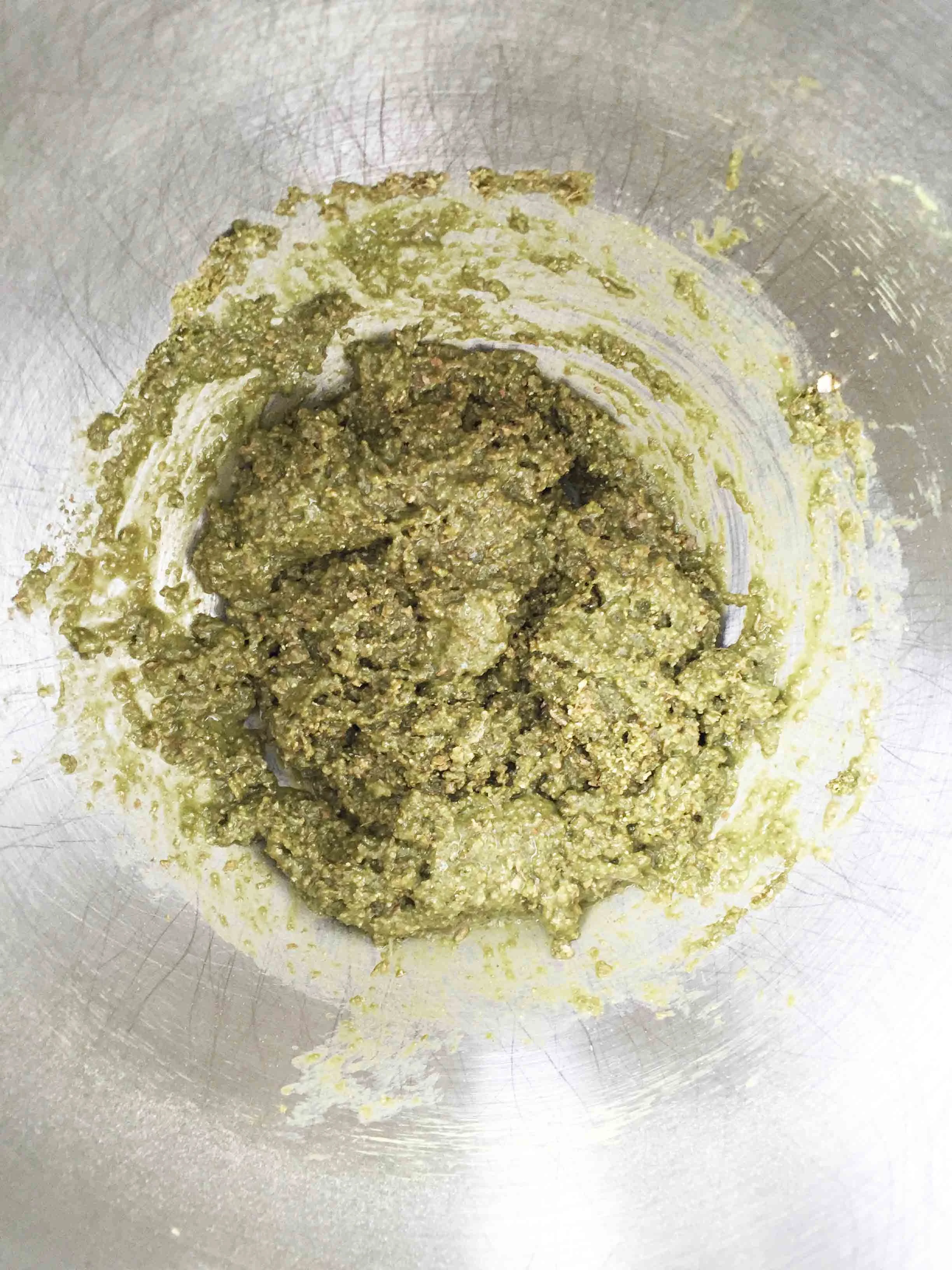 Place the 7 oz. muffin mix and 1 tbsp. matcha powder into the bowl of a stand mixer with the whisk attachment; cut in the butter and mix until well blended.