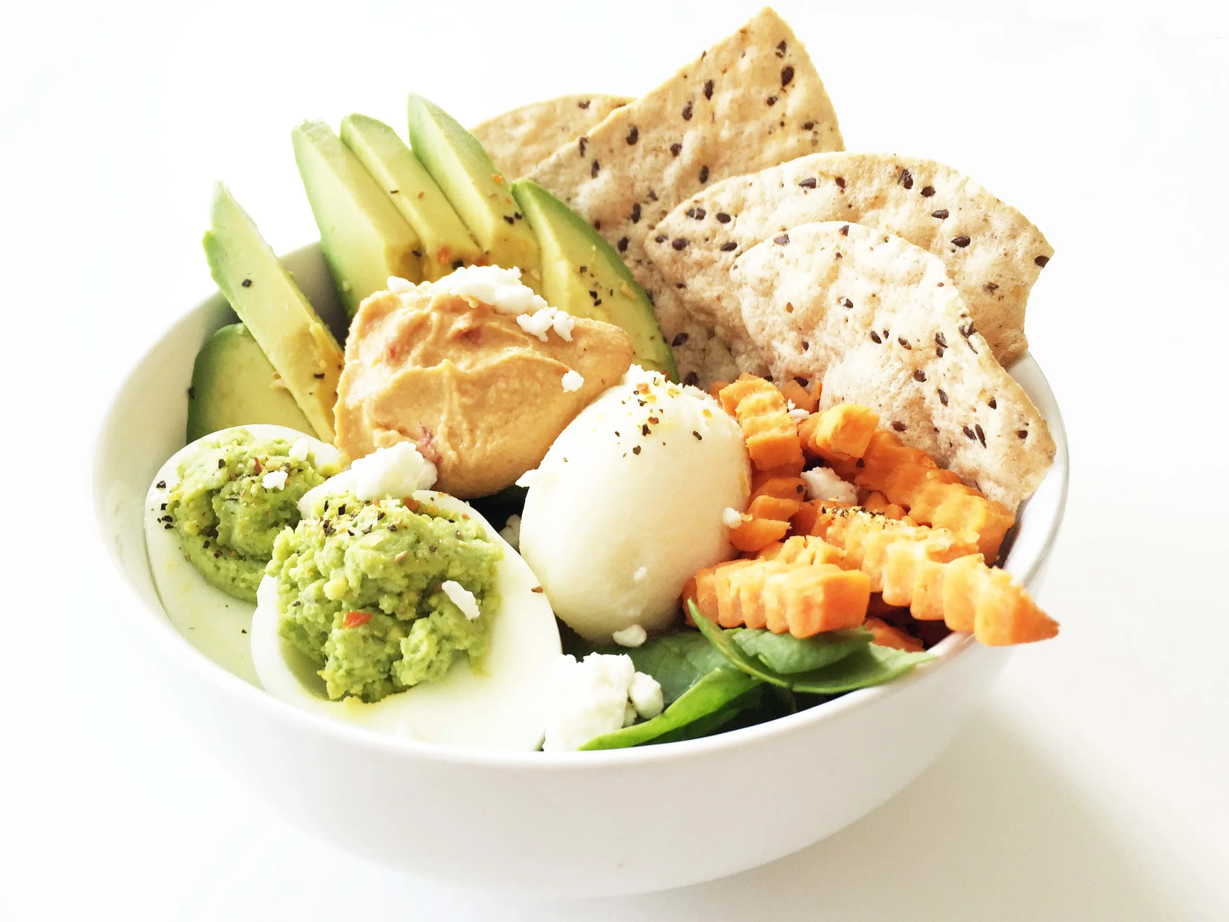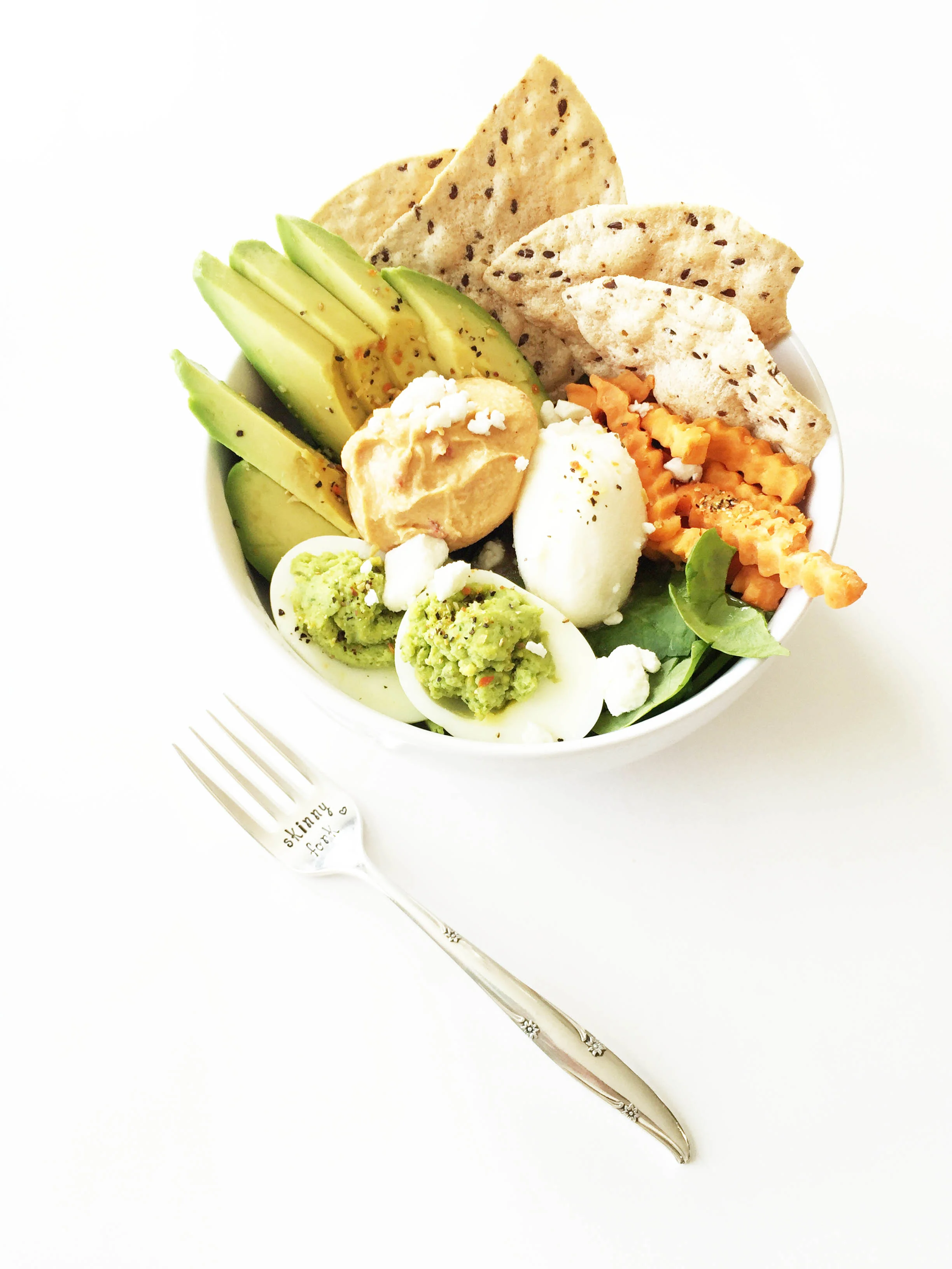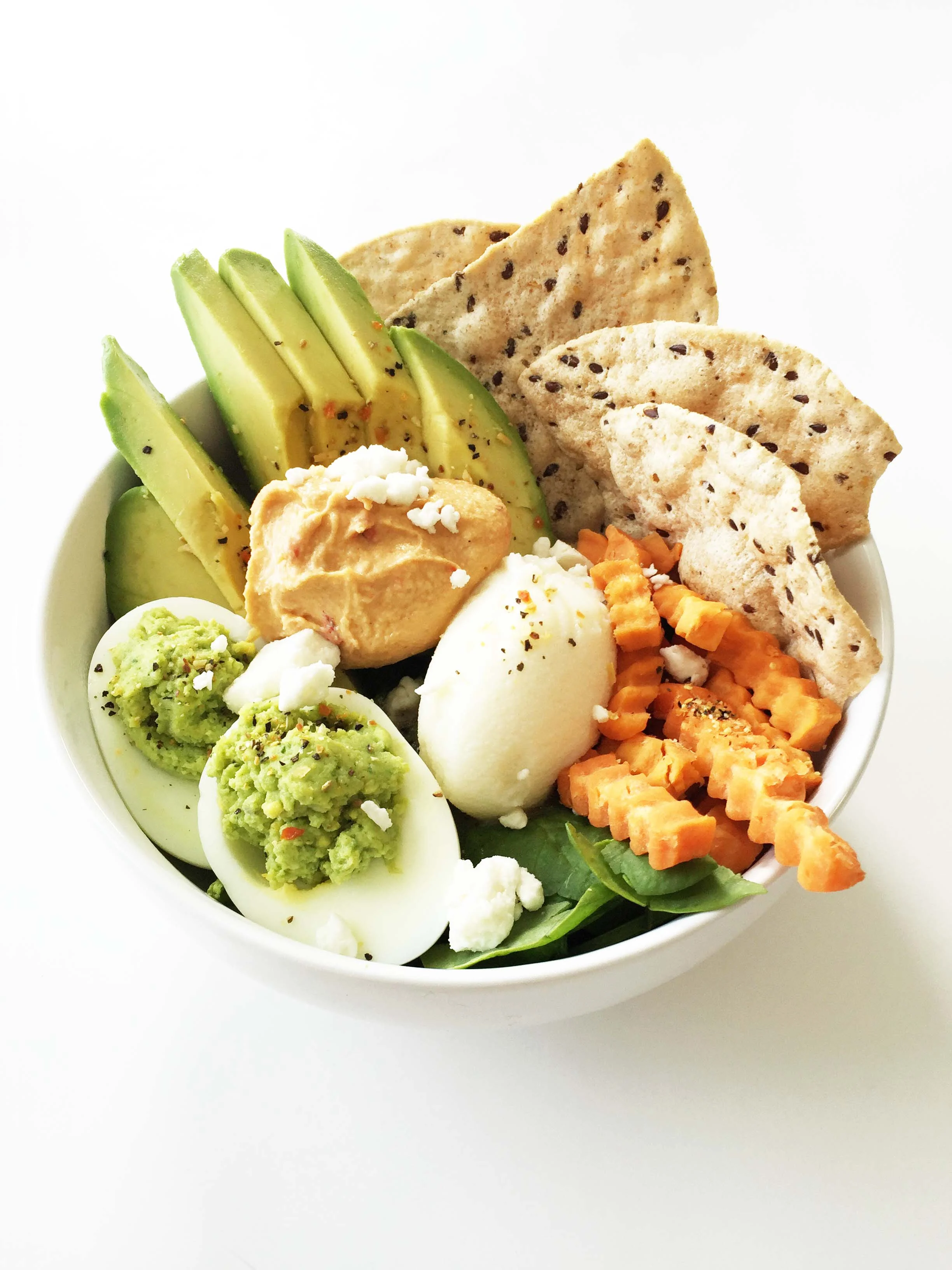This lunch bowl is really super filling and will definitely keep you satisfied on through to dinner. I decided to pair my bowl with a few ancient sprouted grain crisps, but they really aren't needed at all. Just sort of a bonus for scooping up any leftover hummus or ricotta.