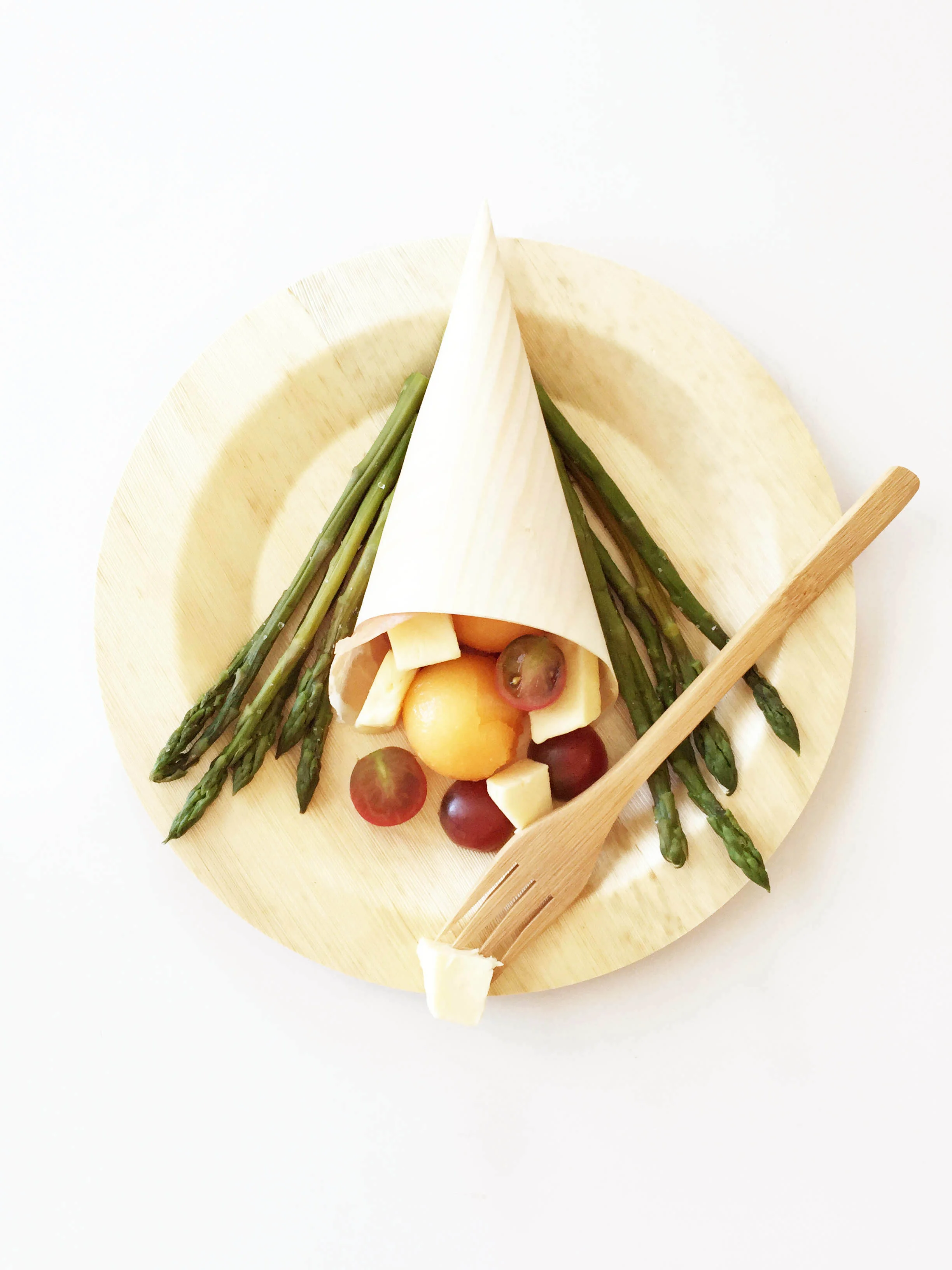 I used the bamboo cutlery, bamboo cones, and the bamboo plate for my presentation here.