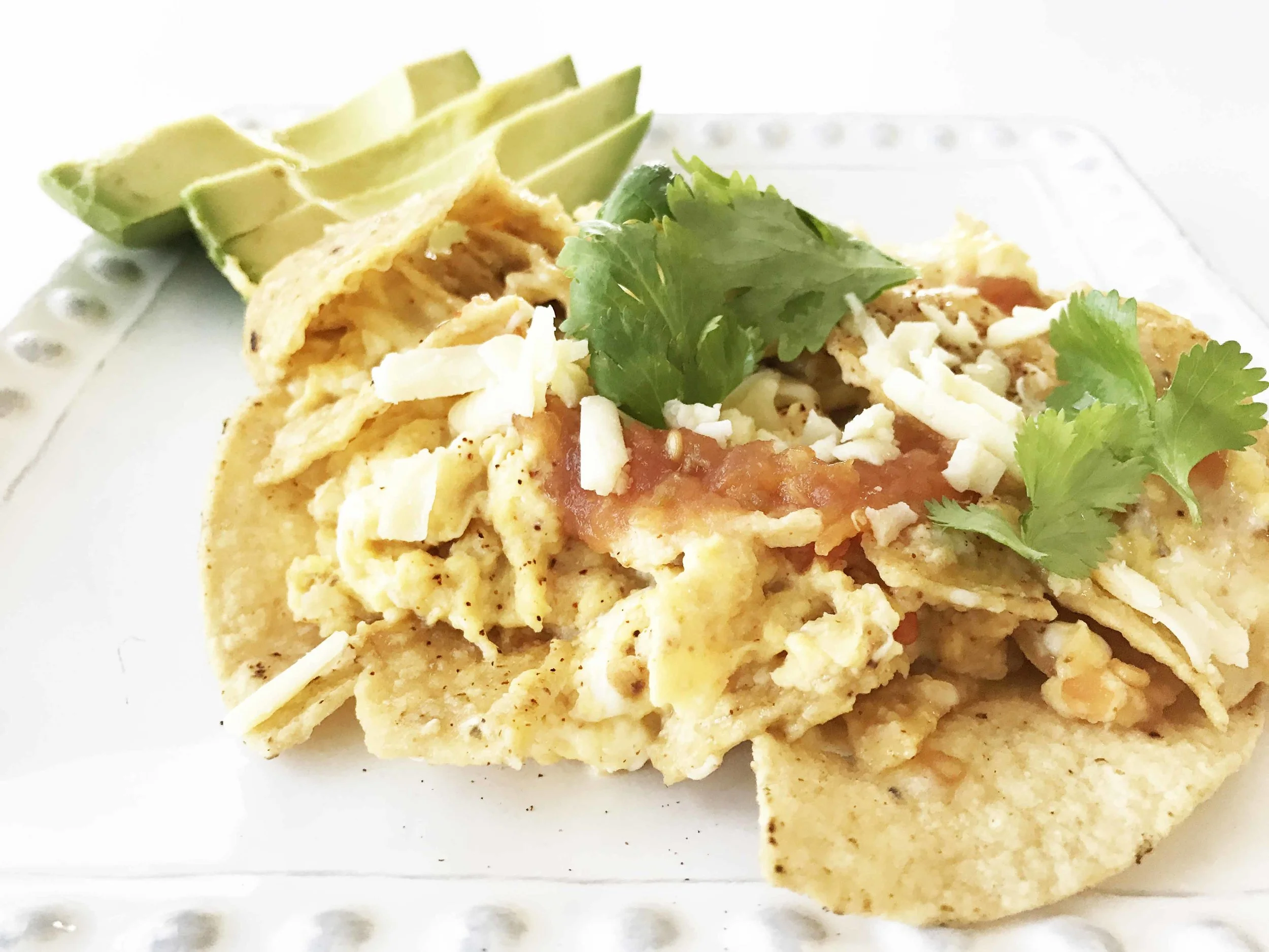 So here we have it! My take on Migas. Migas means 'crumbs' in Spanish. It's a traditional Mexican dish that's made using tortilla chips and scrambled eggs for a perfectly savory breakfast. Usually the tortillas are 'leftover', which makes this the perfect day after Cinco De Mayo brunch.