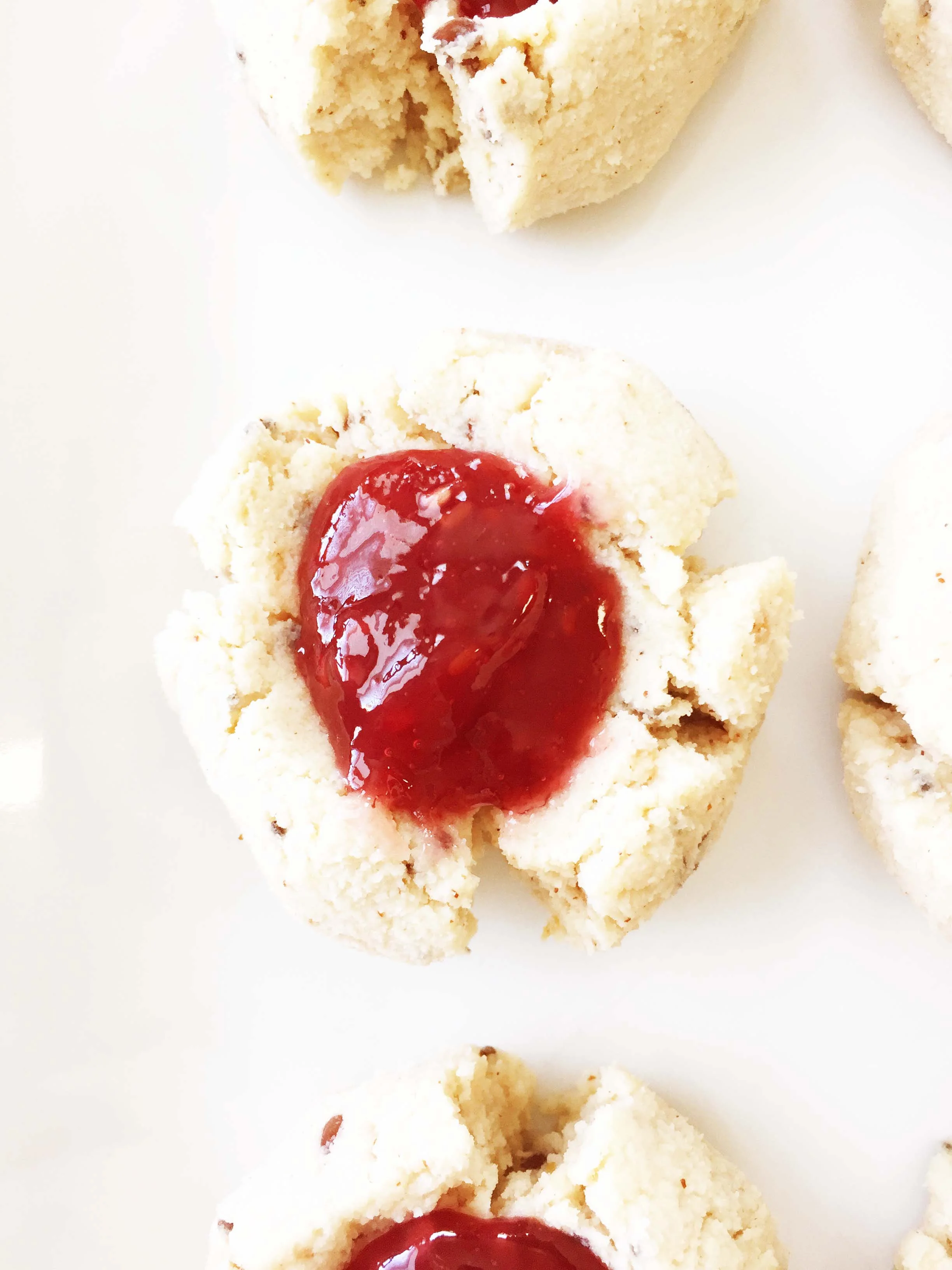 These no bake thumbprint cookies are so super easy to whip and I don't even need to heat my kitchen up at all to enjoy them! The best part is that they are basically as clean as cookies can come! Using oat and nut flours instead of wheat, also means they are gluten-free!